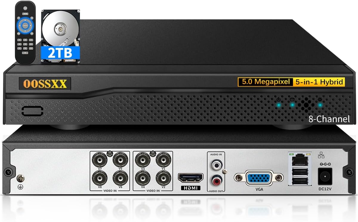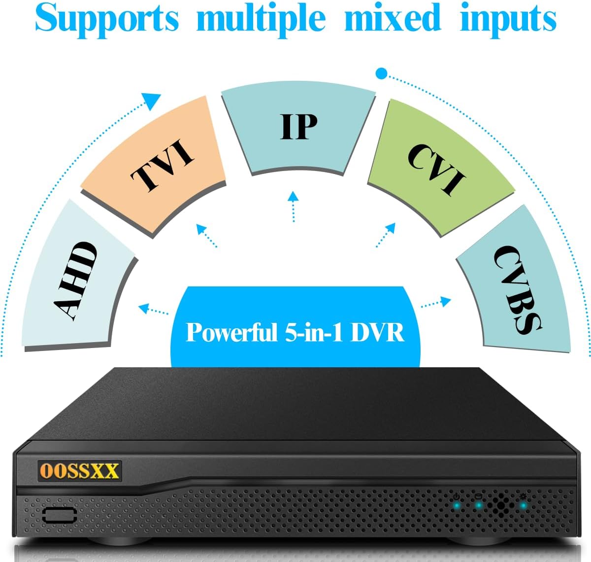 OOSSXX DVR offers 4 kinds recording modes to meet your needs: Record footage continuously; Record during scheduled times; Only record when detect motion; Recycle record.You can customize each camera with different recording modes, which allows you to save space on the hard drive, and you can download the recording files for the USB backup.
