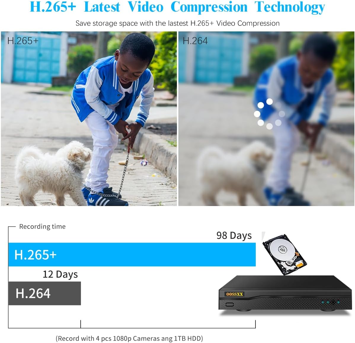 {Advanced H.265+ High Efficiency Video Compression} OOSSXX self-developed H.265+ video coding technology extract features that focus on characteristics of the surveillance scenes for larger storage space and better image quality. H.265+ can further improve compression ratio on the basis of H.265 standard and save much more storage compared with H.264, and thus effectively saving storage resources and provides an excellent and smooth viewing experience.