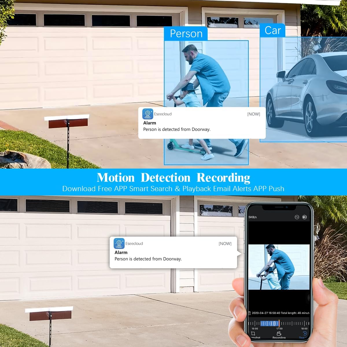 {Advance Motion Detection & Alert Push} Customize motion detection area in each camera to minimize false alerts from moving branches or animals,and block out selected areas to grant privacy in situations, people can not view of certain areas or activities. Instant notifications and email alerts with screenshot will be pushed to your phone directly as long as the cameras detect moving objects.