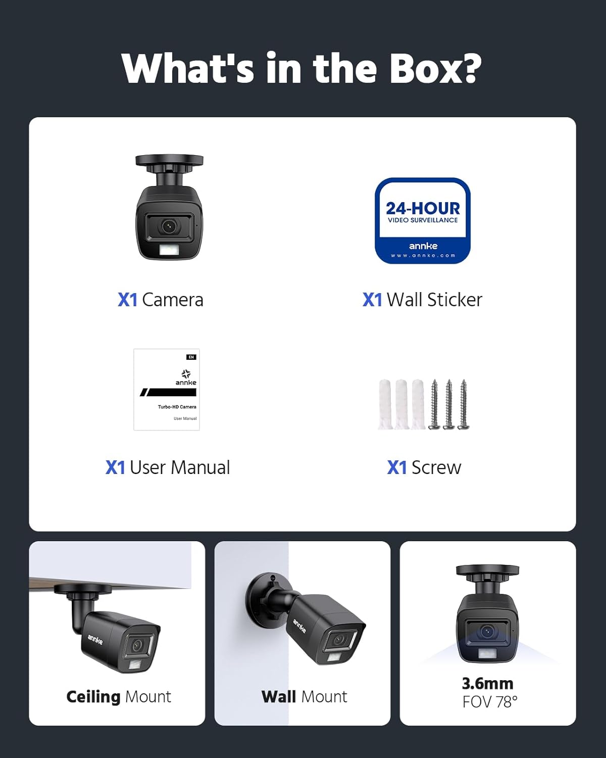 【Easy to Install and Operate】 With the adjustable 3-axis stand, you can adjust the camera head to fix it to the desired angle as you wish. And the outdoor camera is CE certified; you can always rely on its solid power adapter