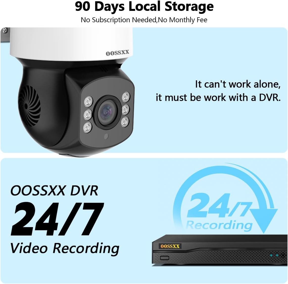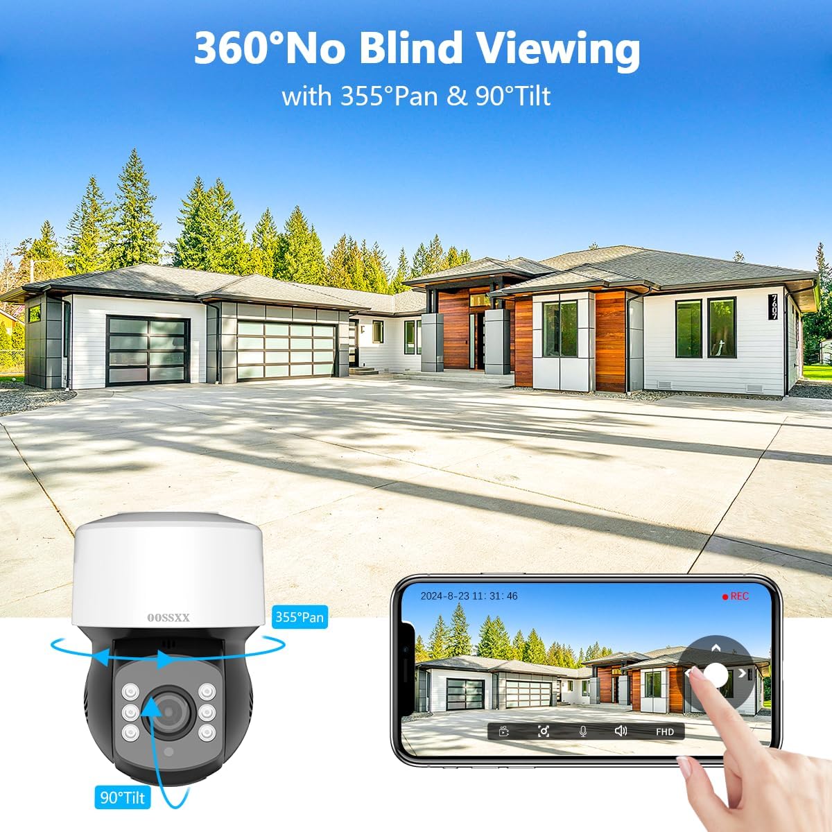 {360° Pan Tilt Zoom House Cameras} Outdoor security cameras provide a 355° horizontal rotation and 90° vertical tilt, allowing you to cover a much wider area compared to traditional cameras, which are fixed at a single angle. And you can control the camera’s pan and tilt via the DVR or the DVR app on your phone. The home camera system also supports 5x digital zoom, enabling you to zoom in on details for a clearer view.Whether you prefer a wired or wireless connection, it guarantees top-tier camera security.