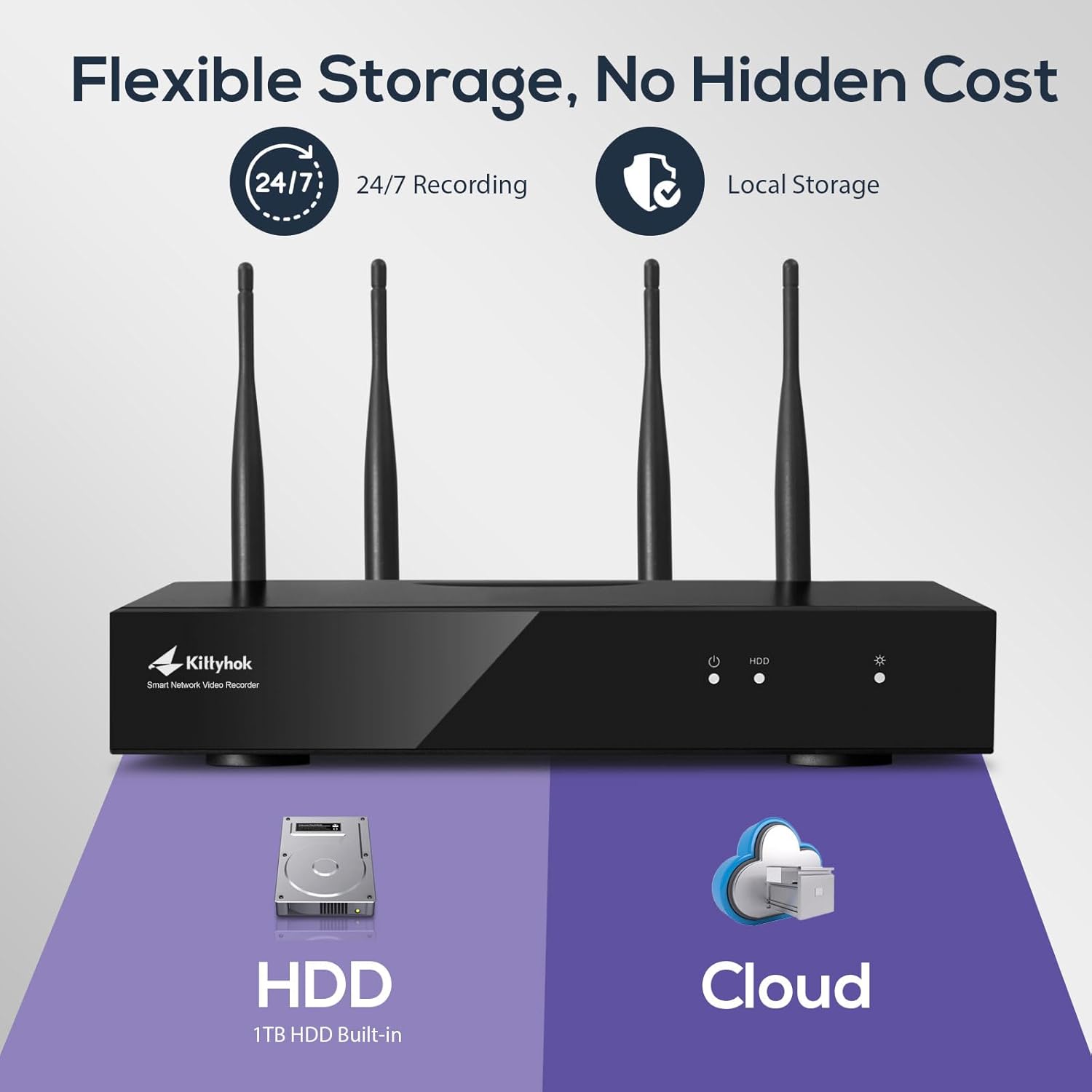 24/7 Recording & No Monthly Fee: Get peace of mind with nonstop 24/7 recording to ensure you never miss a moment. Clips can be saved on the built-in 1TB HDD (expandable to 6TB) and Cloud (optional) for easy access