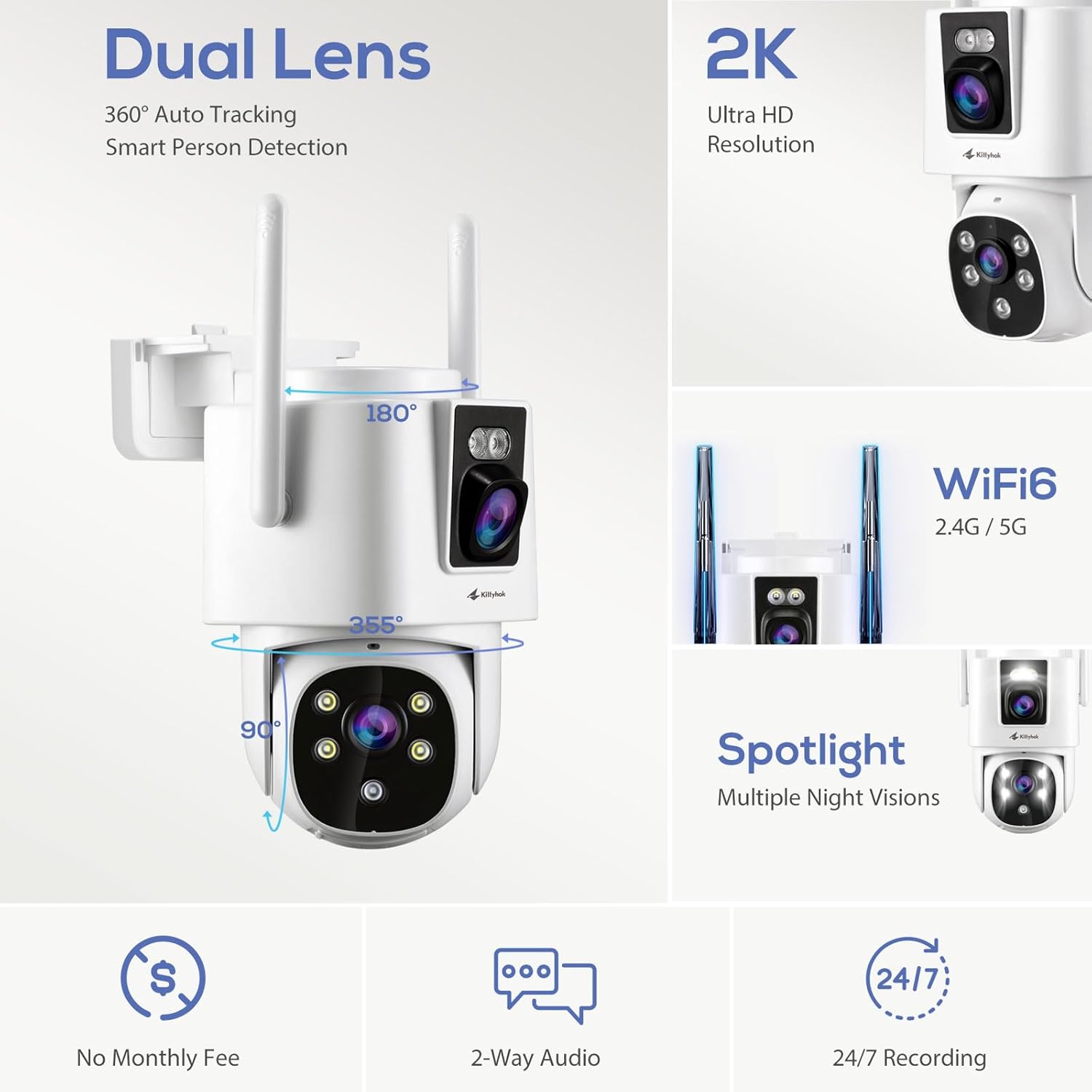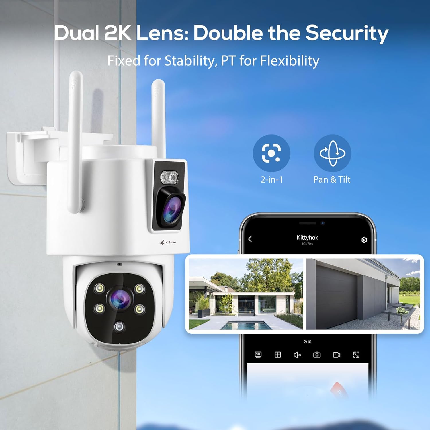 Kittyhok Dual Lens Security Camera System Outdoor Wireless KWDP164 Place It Anywhere