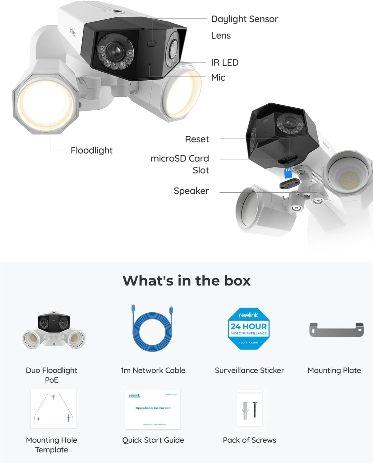 4K ULTRA HD 180° PANORAMA: Two lenses piece together a 180° wide-angle view in 4K resolution with no gap and little distortion, providing a panorama that covers much finer details. An ideal choice for your backyard or driveway. Note: If added to a Reolink NVR with Hw H3MB18/N2MB02/N3MB01, please first upgrade the NVR to the latest firmware version for a better viewing experience and switch to 6MP manually on mainstream on the monitor UI.