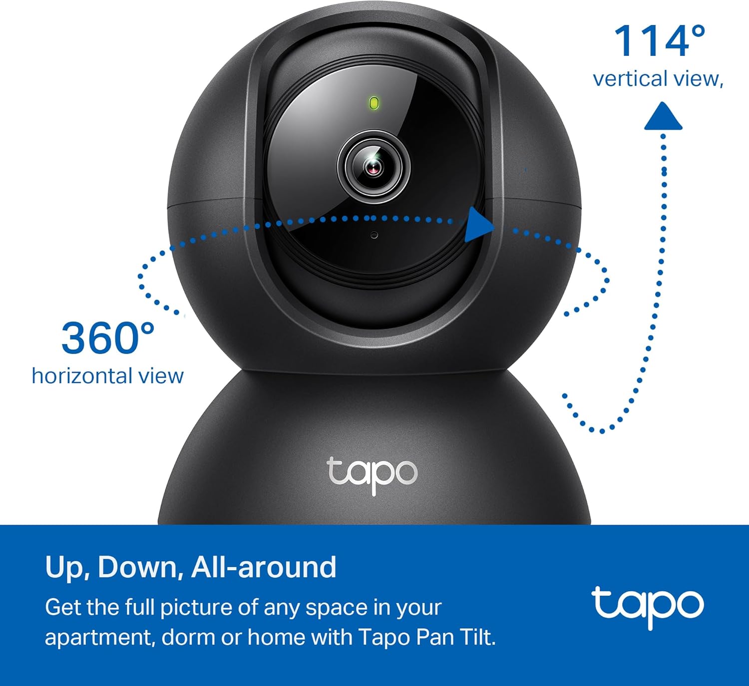 Make your home security smarter with Tapo C201 smart indoor security camera Wi-Fi. This Pan/Tilt IP camera sees everything across an entire room or walkway with the 360° horizontal and 114° vertical range pan/tilt field of view. Get instant push notifications when motion, person, or baby crying is detected from this baby camera monitor, all with no additional fee. Check what’s inside your home, even at night with night vision up to 30ft. with integrated IR sensor. Use 2-way audio with built-in siren to see as a pet camera with phone app and ward off intruders. Fully compatible with Amazon Alexa and Google Assistant, use your simple voice command to view Tapo indoor security camera live stream on Echo Show or Google Chorme Cast with a screen. Save footage continuously on up to a 512 GB microSD card (not included) or subscribe to Tapo Care for cloud storage which saves 30-day video history and provides additional benefits such as motion tracking, baby crying detection, and more. [Before purchasing a microSD card, please check the TP-Link website FAQ to ensure compatibility with your device.]