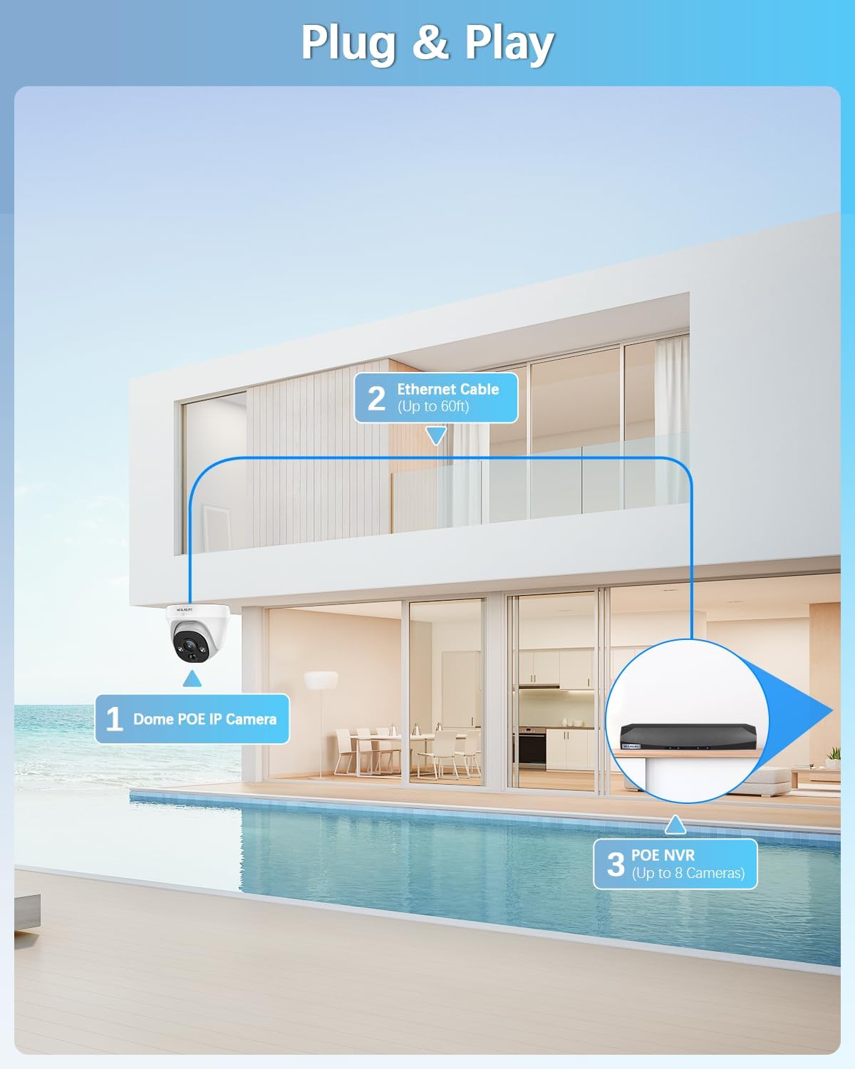 【2-Way Audio】Equipped with advanced noise-canceling microphones and speakers, this IP camera system ensures clear, seamless communication between the app and wired outdoor cameras, enhancing home security. Two-way audio functionality allows you to communicate with people on-site anytime, from anywhere, providing greater flexibility and control over your surveillance needs.