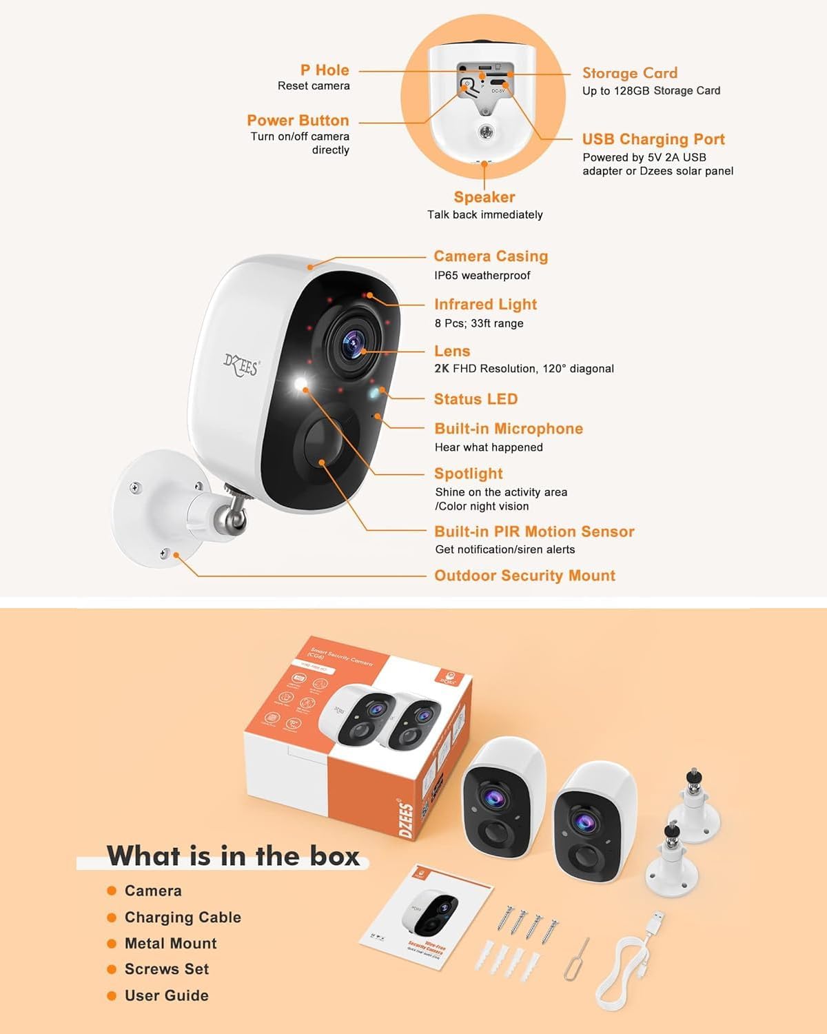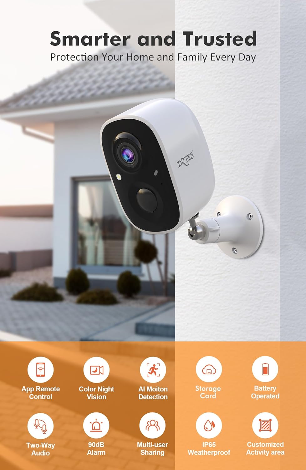 【Dzees Protect Plan & Truly Risk-free Purchase】Dzees outdoor security camera offer 1-months of Dzees Smart for 30-day cloud recording. Plans start at $4.99 per month per account(Up to 20 cameras). Free 3-day cycle cloud storage has been provided, you can enjoy the storage service without any subscription. Amazon’s 30-day free return ensures this will quickly become your favorite no-risk purchase.