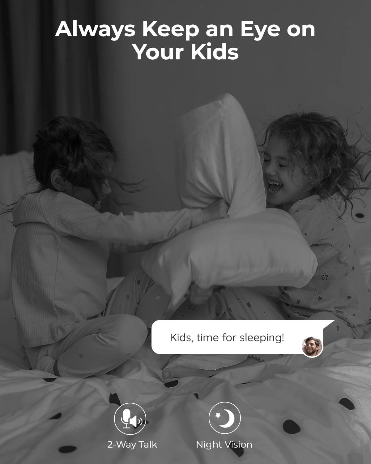 The indoor camera can smartly analyze the shape of people and pets to accurately detect their motion and send you real-time motion-triggered alerts.