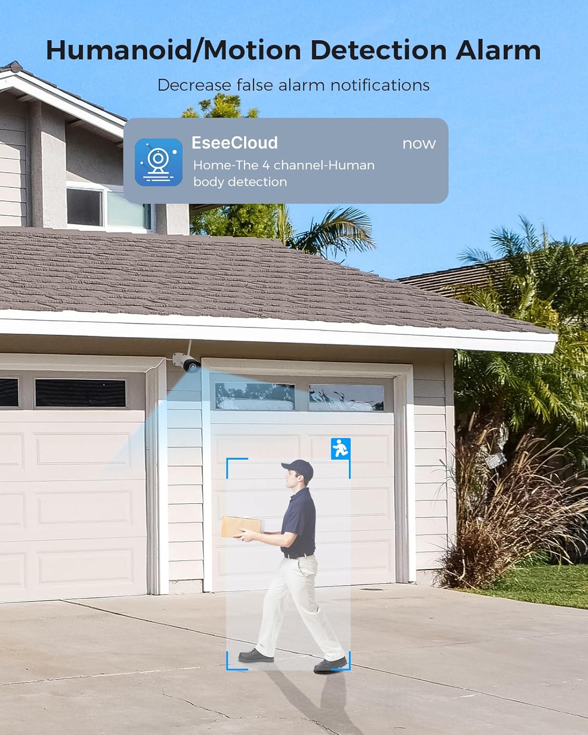 Remotely Anytime and Anywhere: The wireless surveillance camera system allows you to view live video remotely at any time and from anywhere using your phone or tablet (compatible with Android and iOS). Simply connect your DVR box to your home router via a LAN cable, then download the free “EseeCloud” app from Google Play or the Apple App Store. Enter your Cloud ID, username, and password to access video via Wi-Fi or 4G/5G networks. For PC or laptop viewing, use the EseeCloud software compatible with Windows and Mac systems.