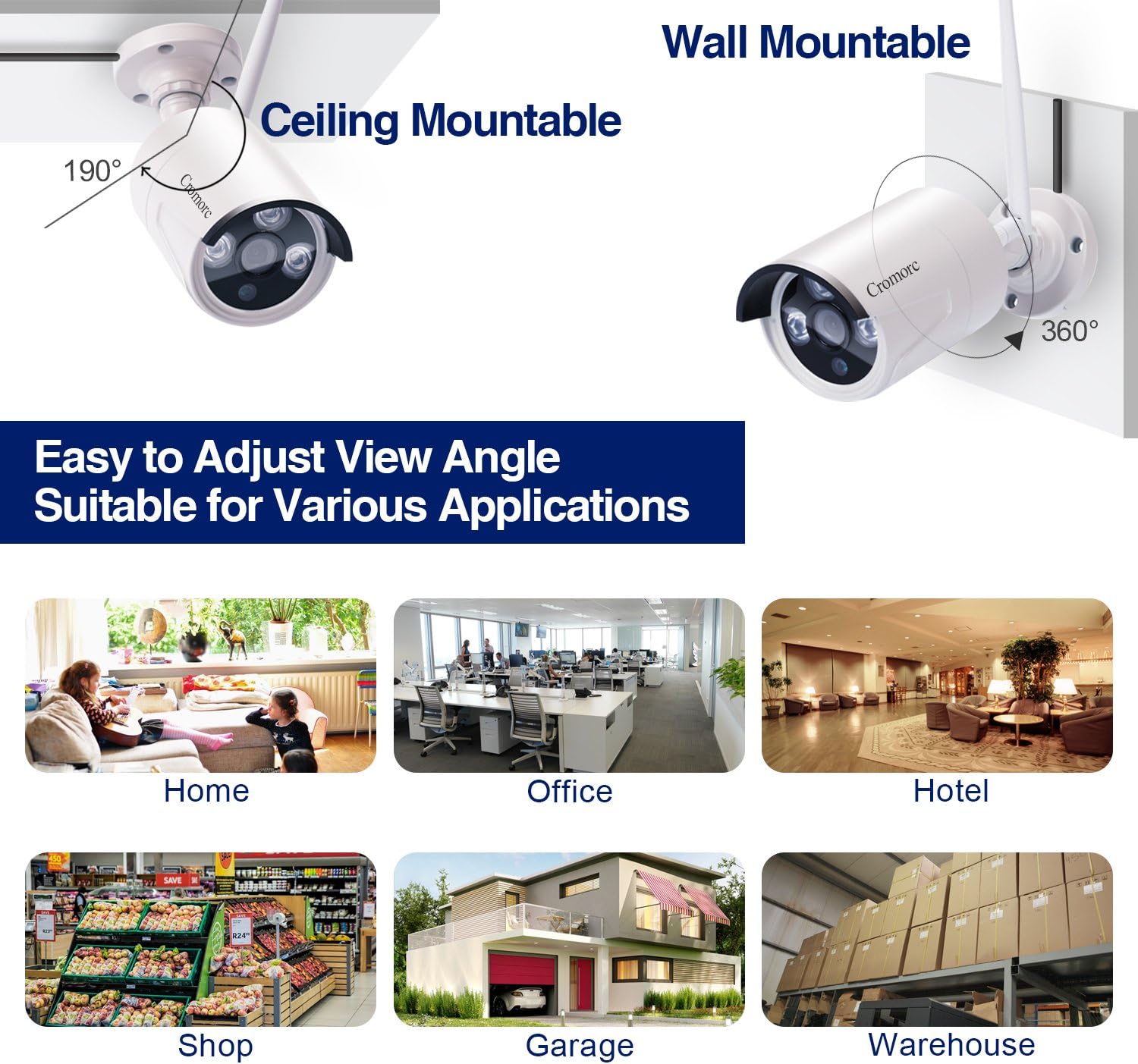 Upgraded Cromorc Complete set Security Camera System for 24/7 Home and Business Surveillance