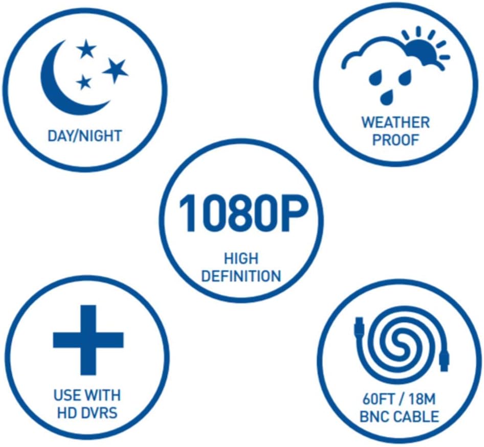 DVR CCTV BULLET SECURITY CAMERA WITH ACTIVE DETERRENCE: Provide extra surveillance to your home or business with 1080p Full HD clarity; Sensor Spotlights deter intruders and provide Color Night Vision up to 32ft and Black and White up to 100ft