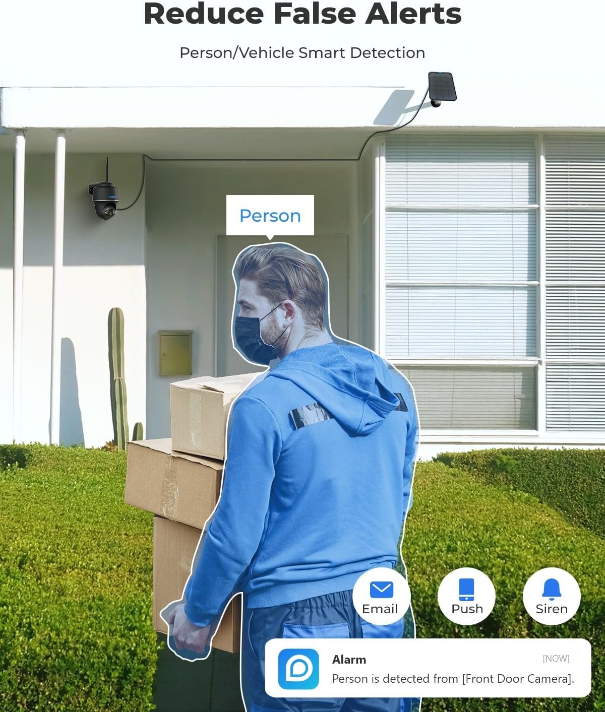 SMART DETECTION & INSTANT ALERTS: Get fewer false alarms owing to advanced persons and vehicles detection. Instant email and push notifications will come when motion is detected. Selected human/vehicle motion recording options are offered while playback to speedily locate what triggered the alarm.