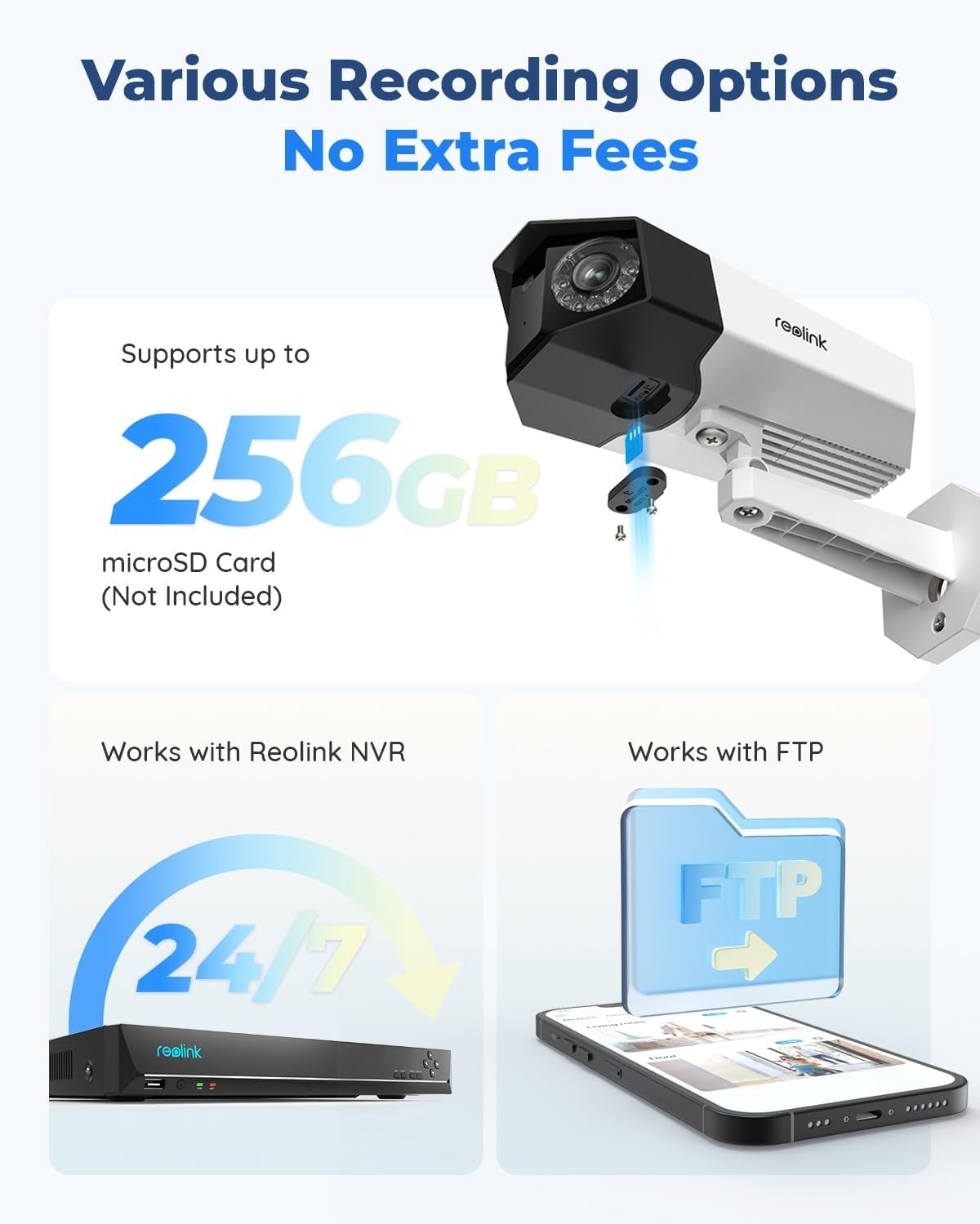 INSTANT ALERTS & REMOTE ACCESS: The camera will send instant push/email alerts to your devices once it captures something abnormal. Check what’s happening anytime anywhere via the Reolink App, all within a few taps and without extra fees.