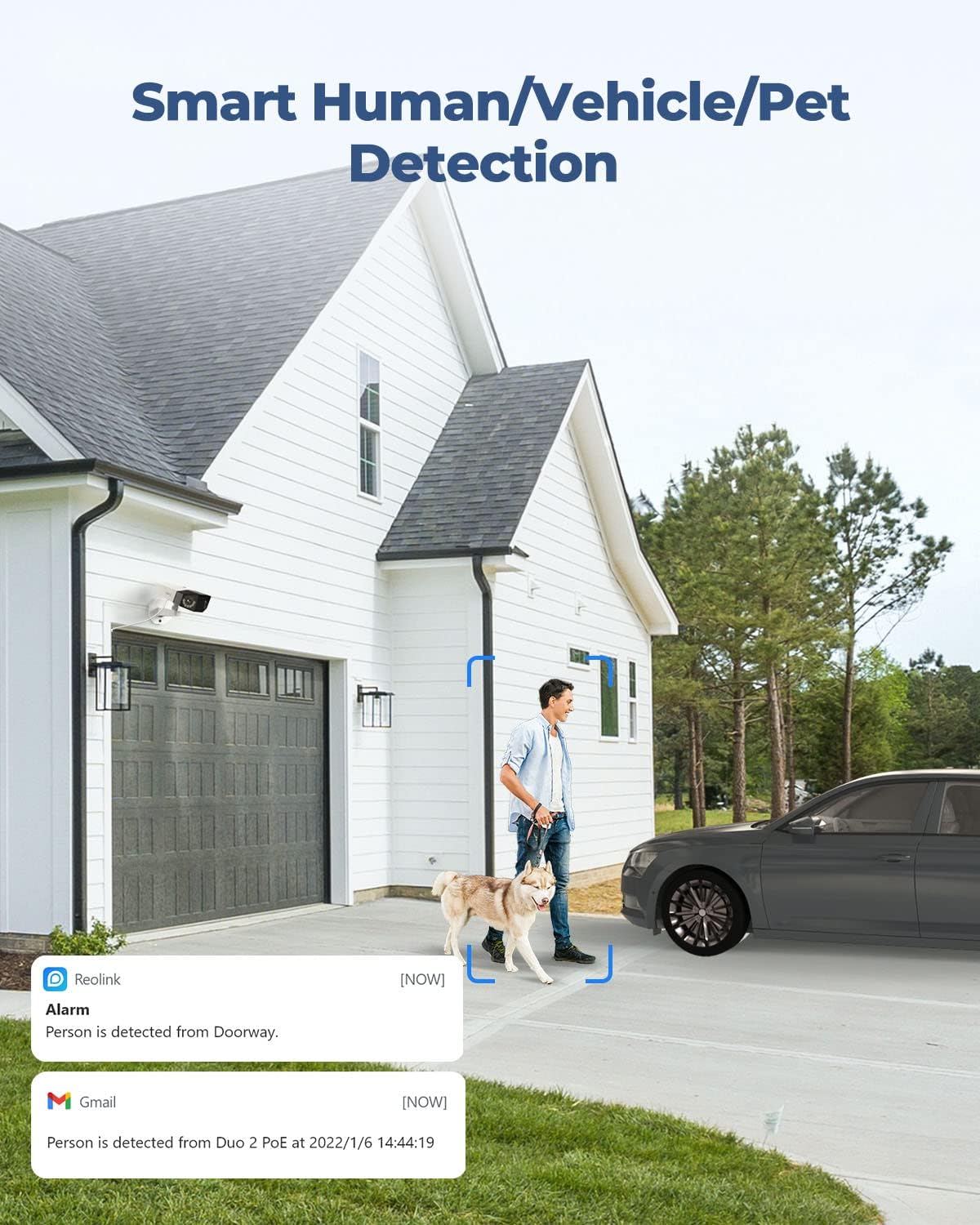 SMART PERSON/VEHICLE/PET DETECTION: Say goodbye to the unwanted alarms triggered by moving branches or flying bugs. The camera identifies true threats by cutting-edge detection algorithms, giving you the utmost peace and relief.