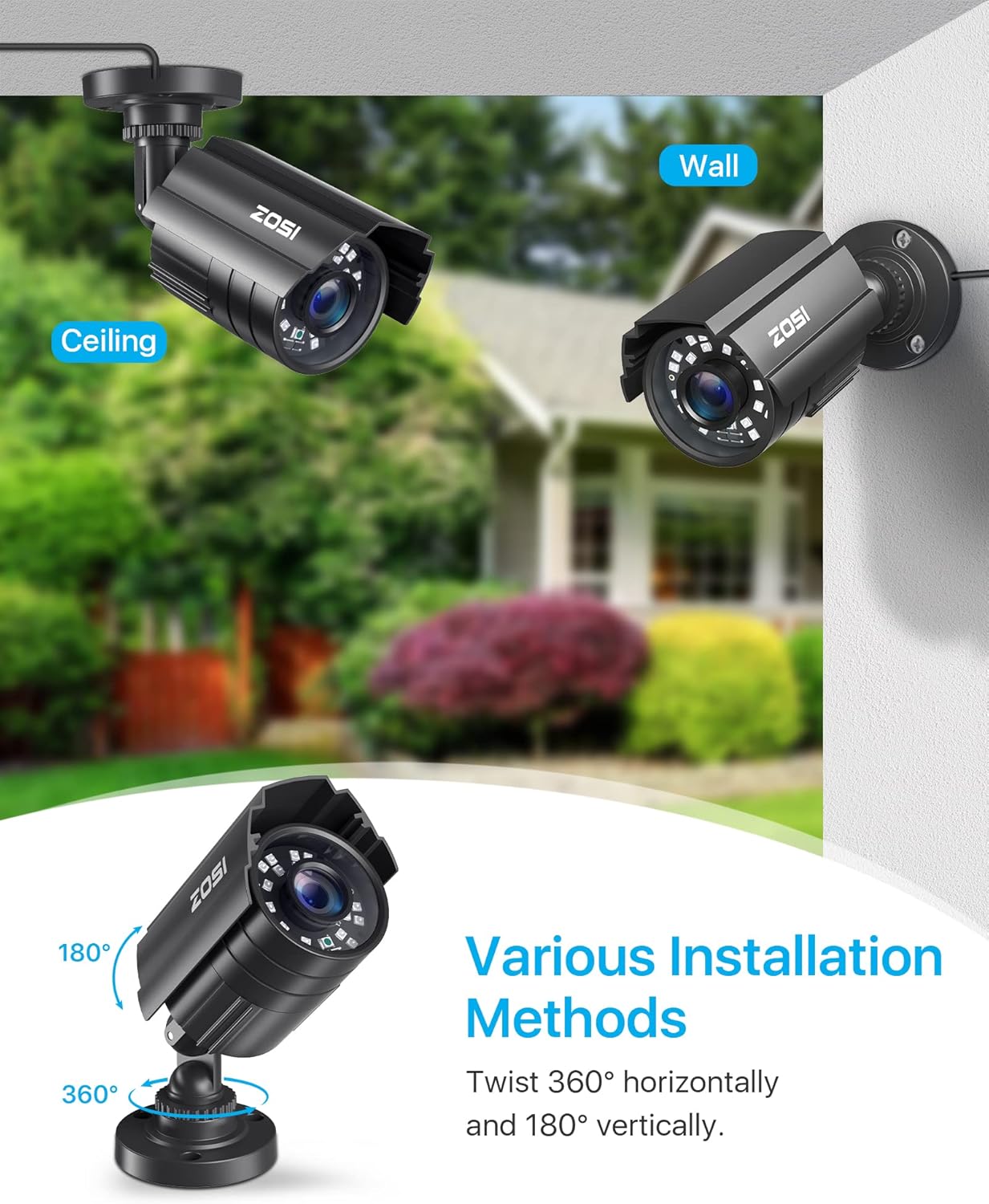 【IP66 Weatherproof,Indoor and Outdoor use】Made of aluminum alloy, it is resistant to vandalism and can withstand the harshest outdoor conditions. The adjustable 3-axis camera bracket allows easy cable pass-through, ensuring worry-free usage in rainy or snowy weather.