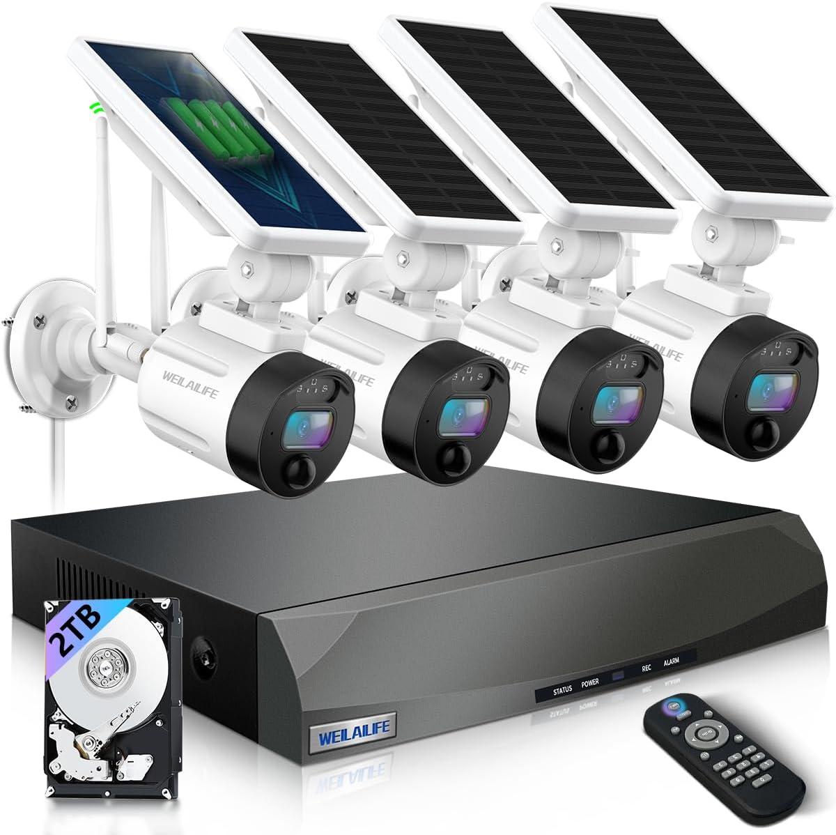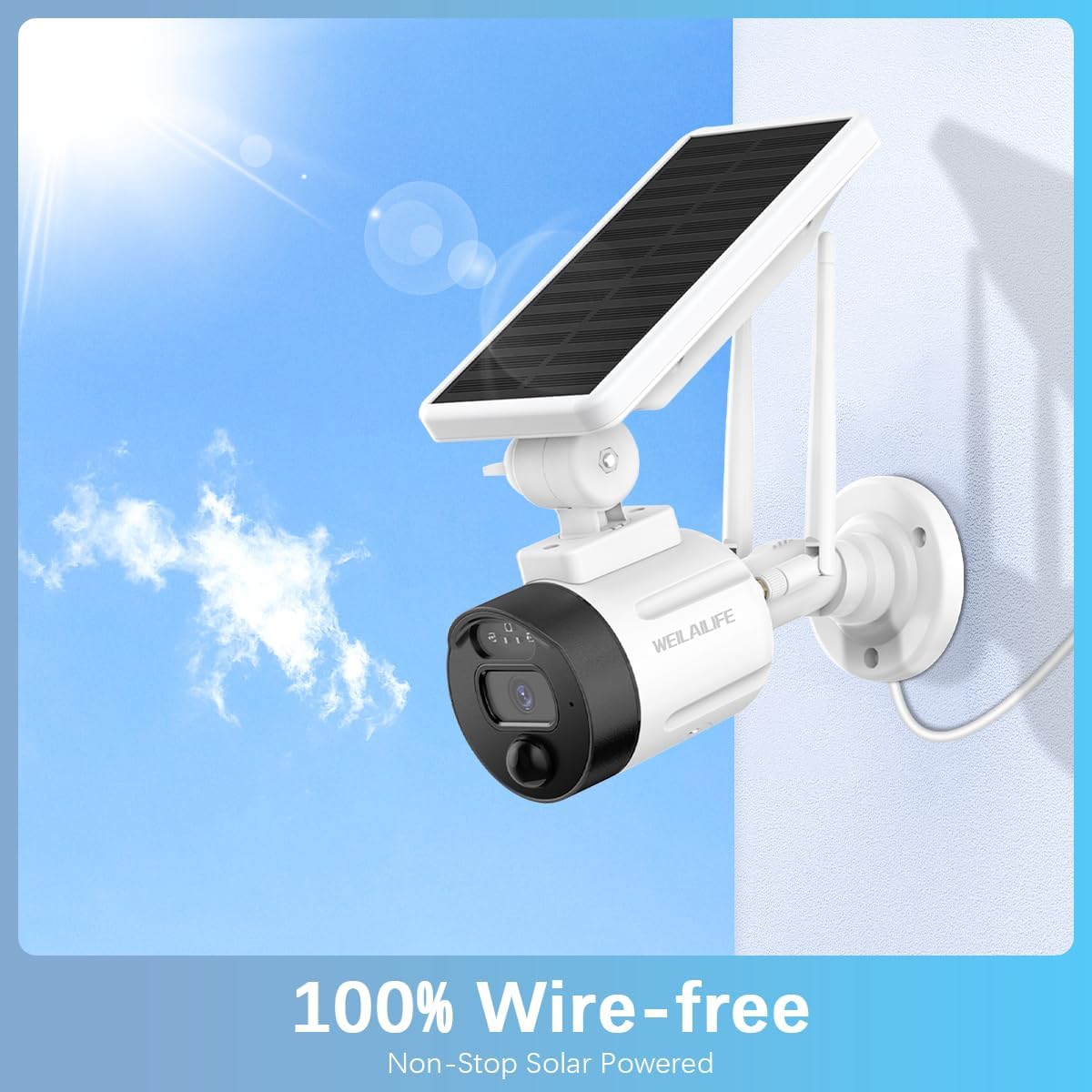 【Completely Wire-Free and Battery Operated】WEILAILIFE’s wireless solar outdoor surveillance camera system requires no wiring at all, making installation easy. It runs on batteries, eliminating worries about power or network connections. Even first-time installers can set up this outdoor wireless solar security camera with ease.