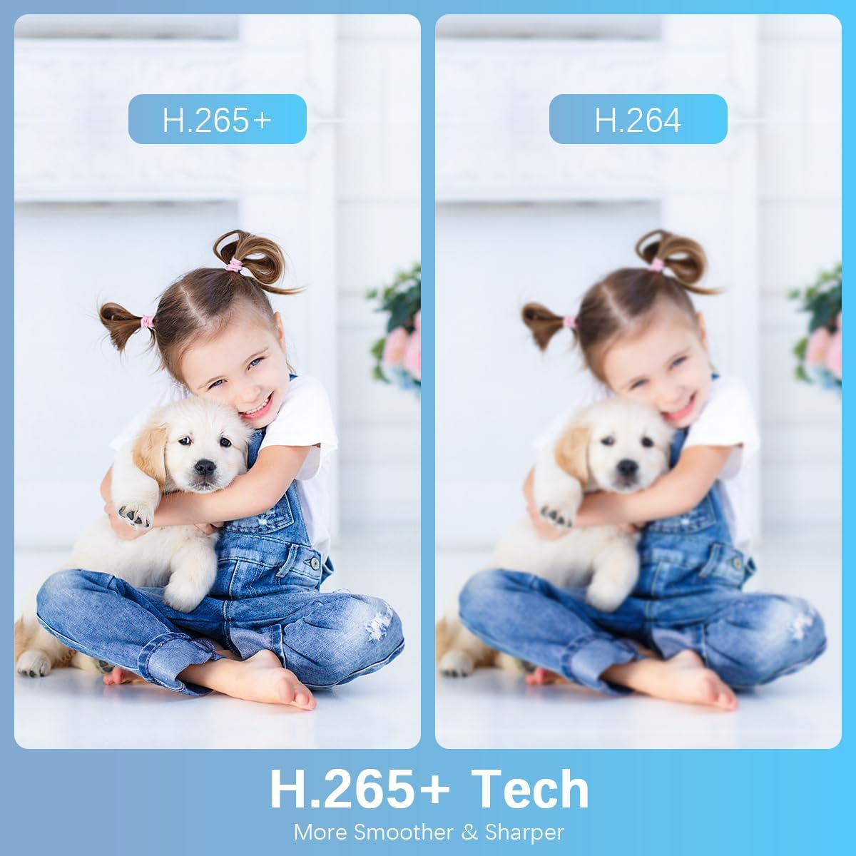 This home security cameras utilize the latest H.265 technology, providing superior video compression and storage efficiency. Enjoy clearer footage and extended recording times without compromising on quality.