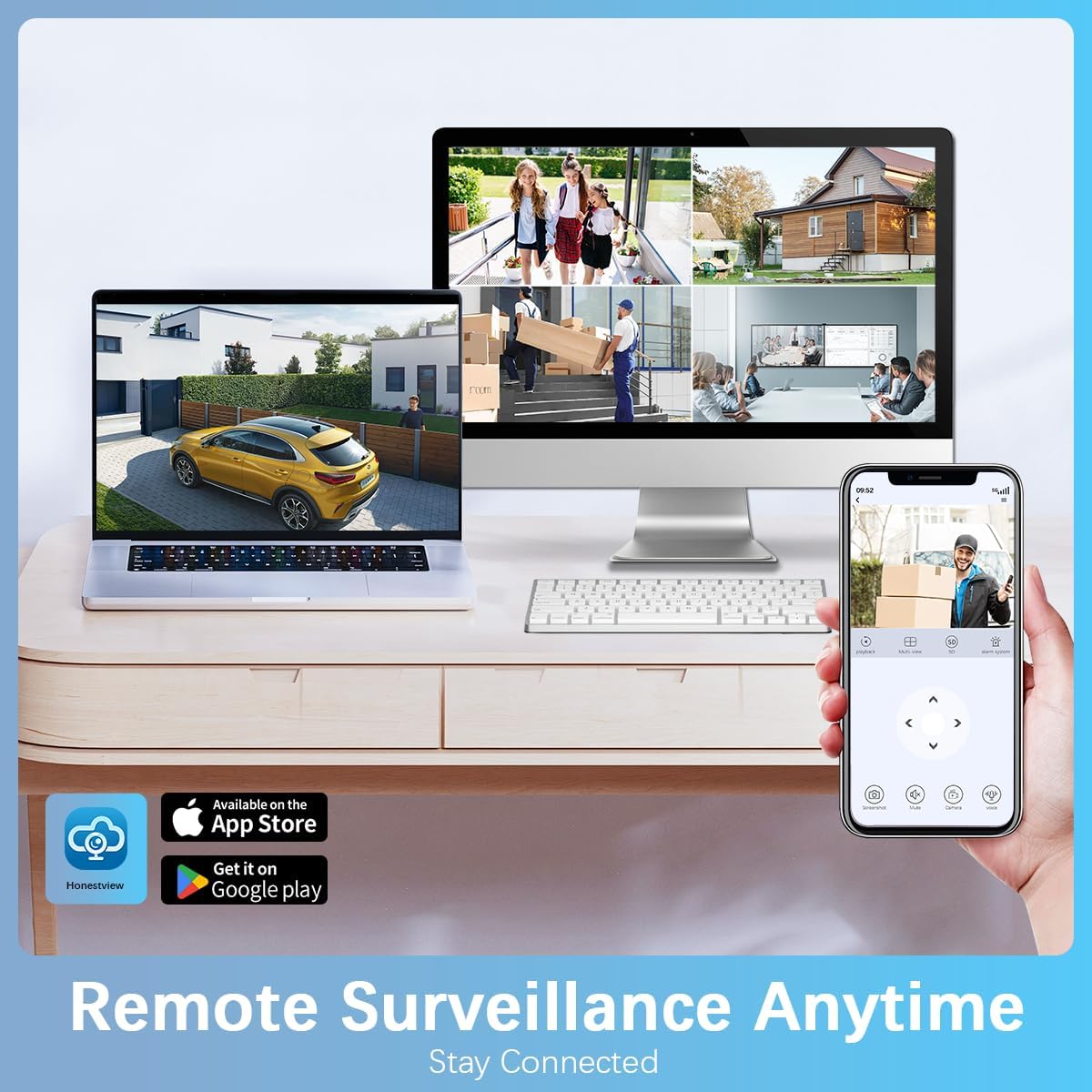 【No Monthly Fees for the App】Download the free “HonestView” app from the App Store to remotely view your videos on your smartphone (iOS & Android), PCs, or tablets. This outdoor solar powered security camera, which includes night vision cameras, offers a convenient and cost-effective solution for home security. It’s also suitable for businesses in need of a reliable wireless solar security camera system. The battery powered security cameras is easy to set up and compatible with the “sistema de cámaras de seguridad para casa” as well.