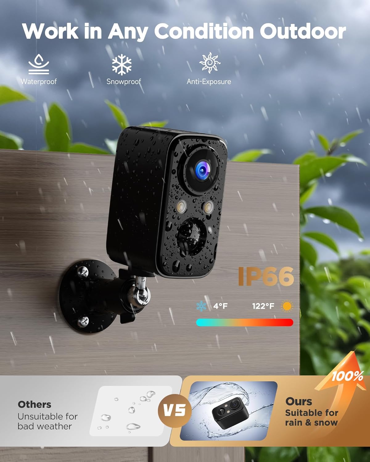 【PIR Motion Sensor & Real-time Alerts 】 Wireless security camera outdoor using the latest PIR sensor that can identify person, pet, vehicle, support set alarm plans. Once outdoor security camera detected the motion, a notification will be sent to your mobile APP and the video or image will be stored in cloud storage. This will be a great security camera system for your family.
