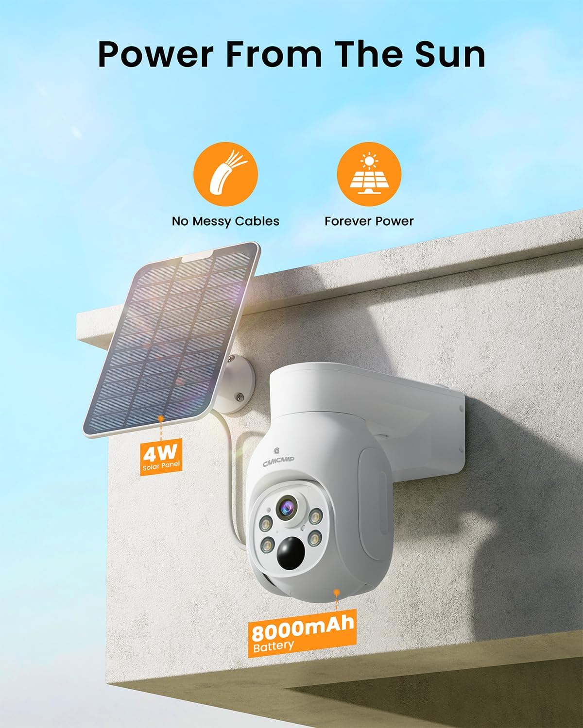 Tailored Smart Home Surveillance: Once detects an intruder, the solar security cameras wireless outdoor will record a video and send you even an instant alert notification. At the same time spotlights and siren will be activated to warn unwelcome intruders. You can customize motion areas and privacy areas to focus only on what you want to focus on