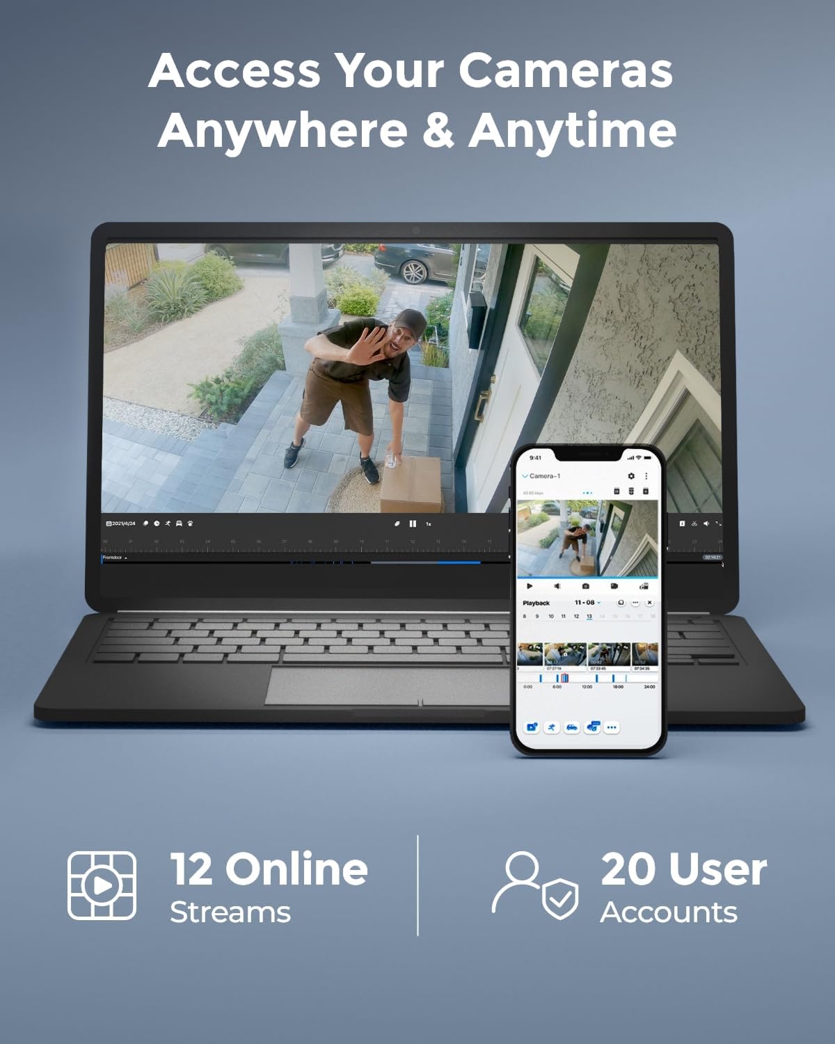 LIVE VIEW & REMOTE ACCESS & NO EXTRA FEES: Stay worry-free about missing any motion events captured by your cameras. Enjoy the freedom to view live feeds and control your cameras from anywhere you are. (For two-way audio, a speaker needs to be added.) No additional fees are necessary.