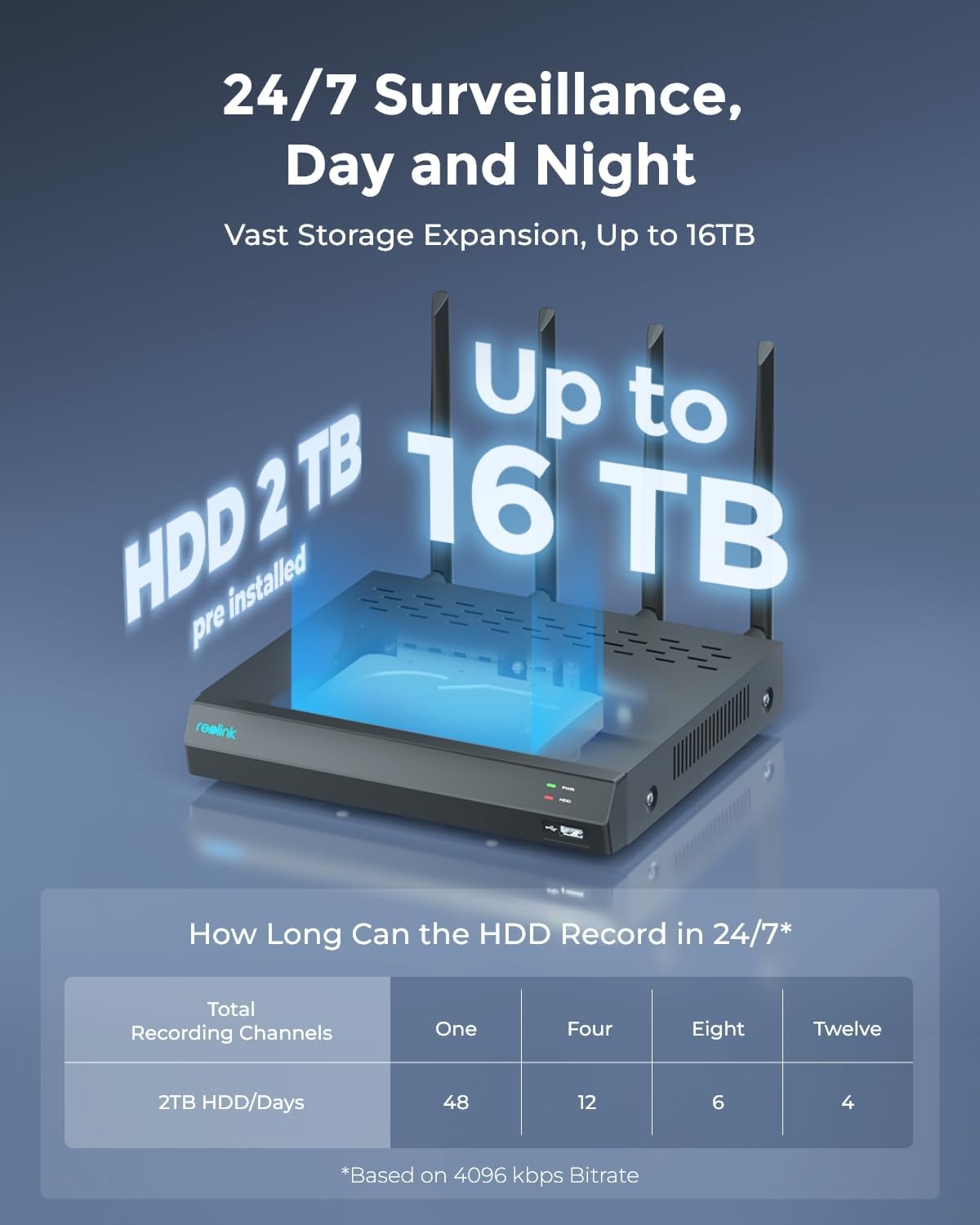 24/7 RECORDING & LOCAL STORAGE: Enjoy continuous recording with ample storage (expandable to 16TB). Keep your property secure around the clock, with no worries about storage capacity. Your peace of mind is assured as all recordings are stored locally.