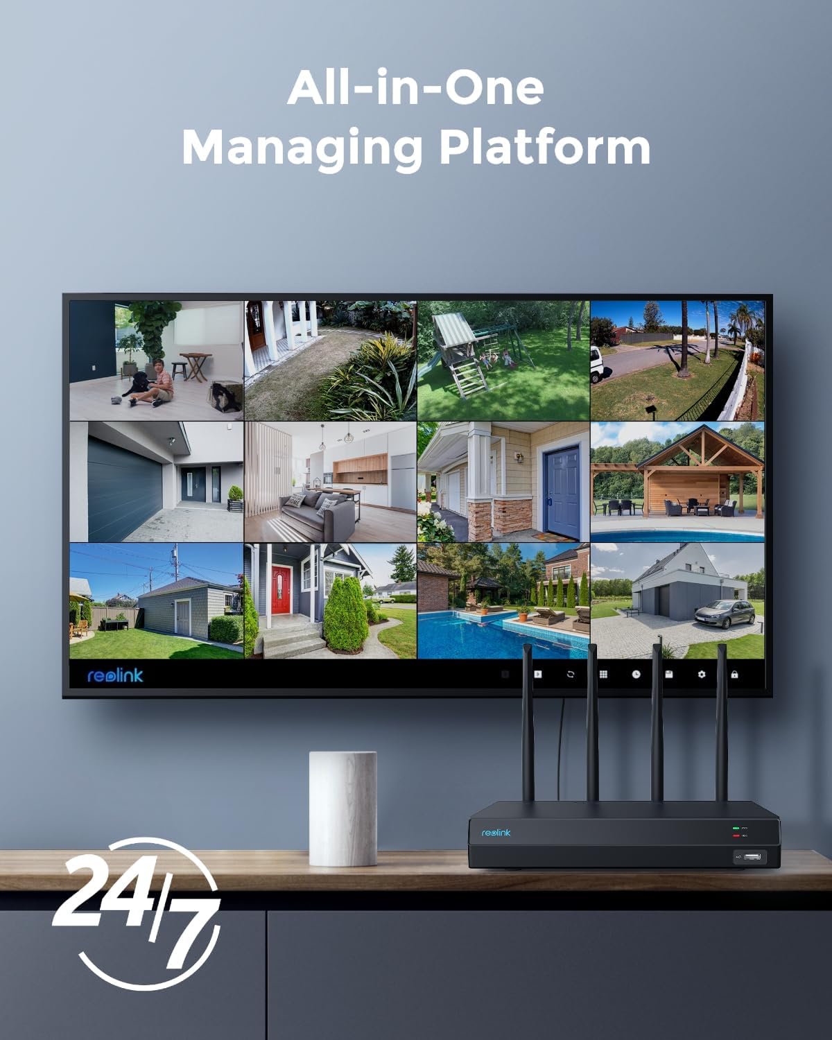 EASY SETUP & CAMERA MANAGEMENT: Simplify your setup with effortless installation, as WiFi cameras connect seamlessly to the Network Video Recorder without the need for wiring. Enjoy ultimate convenience in managing all security cameras. (Initial network configuration for plug-in WiFi cameras requires Ethernet cables.)