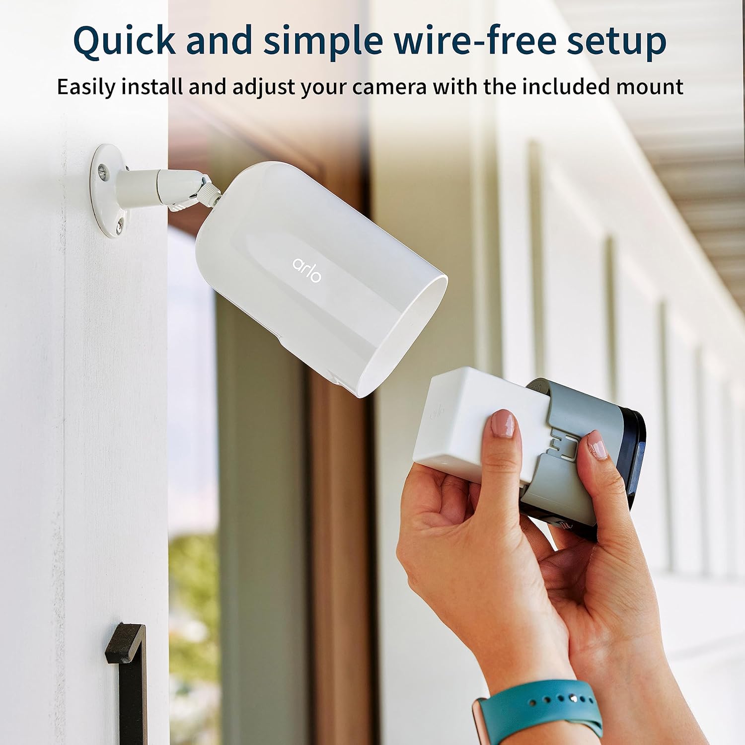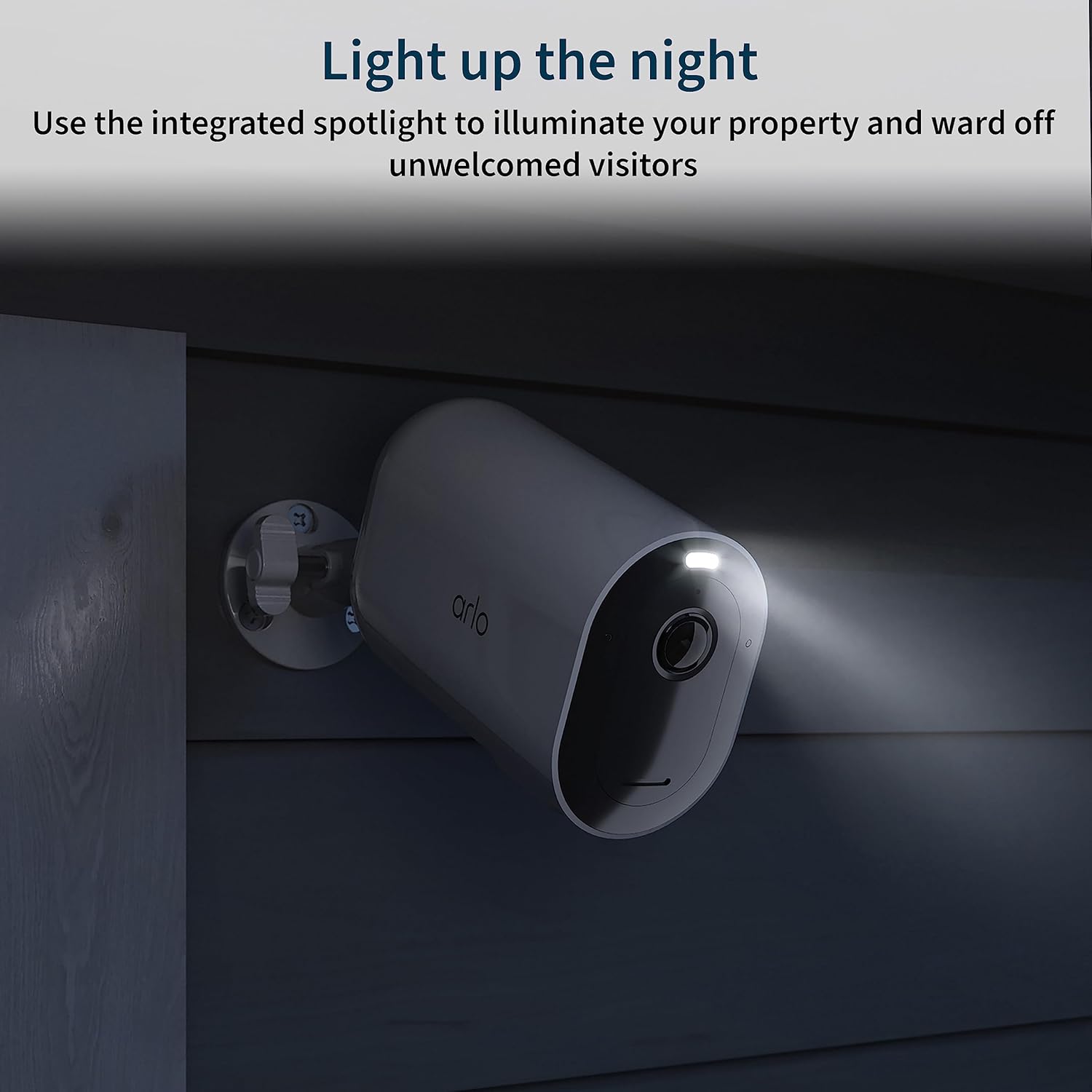 Elevate your home security with the unparalleled sharpness of the Arlo Pro 5S 2K Spotlight Camera. With its 2K HDR and Motion Detection capabilities, this camera captures the small details, providing you with crystal-clear footage. The advanced Color Night Vision feature ensures that even in the dead of night, you can discern important details with ease. Whether stationed inside as an indoor camera or guarding the perimeter as an outside security camera, the Pro 5S offers vigilant home surveillance around the clock. With Dual-Band Wi-Fi, this home security camera ensures a reliable, uninterrupted live feed directly to your device. Quick live video loading means you can live stream video and you’re always just a tap away from monitoring your home. The wide 160-degree Field of View covers more ground, so you won’t miss a thing, making it an integral part of your security system. Installation is a breeze, thanks to it being a wireless camera, allowing you to set up your surveillance system like a pro. When paired with the Arlo Home Security System, you benefit from SecureLink technology, which offers a more secure and long-range connection. Embrace this premium surveillance camera and step into a world of home security. Arlo builds trusted, lifelong customer relationships by creating innovative, smart security solutions that deliver an exceptional user experience. The Arlo Secure App offers an intuitive way to control your home security with industry-leading features that help you take quick action. Disclaimer: ¹Requires an Arlo Secure paid subscription after the trial period, and some Arlo Secure services may be unavailable in certain regions. For current information on features that need a paid subscription, visit arlo.com/arlosecure.
