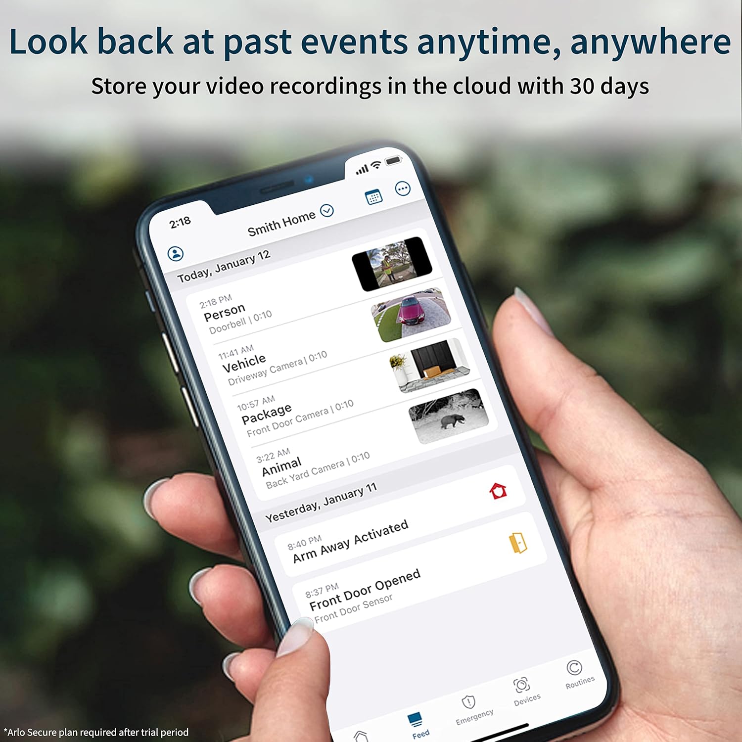 Get more with an Arlo Secure plan (paid plan required): Share & store video for up to 60 days, know more with personalized alerts for Person & Vehicle Recognition, plus get alerts for Packages, Animals, and Fire Detection.¹