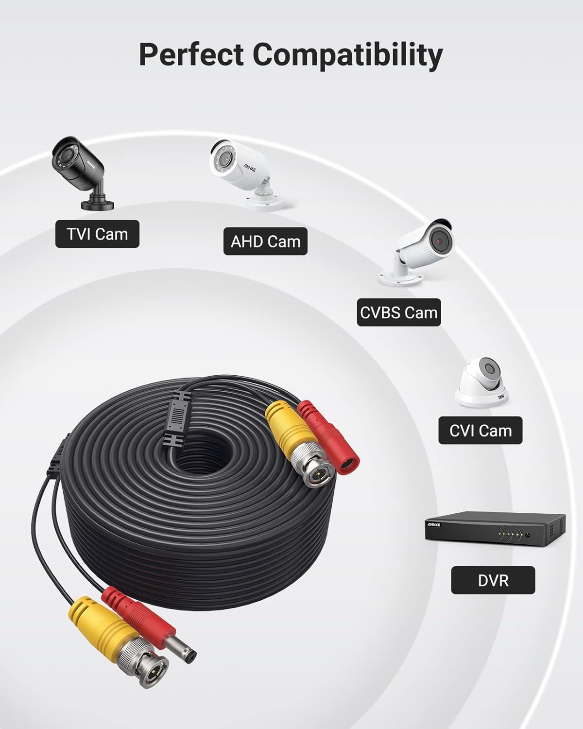 【Strong Compatibility】The cable is compatible with all brand surveillance DVR camera system, 960H/720P/960P/1080P/3MP/4MP/5MP, AHD/CVI/TVI. Note: For video cameras with 2.1mm DC power connectors only.