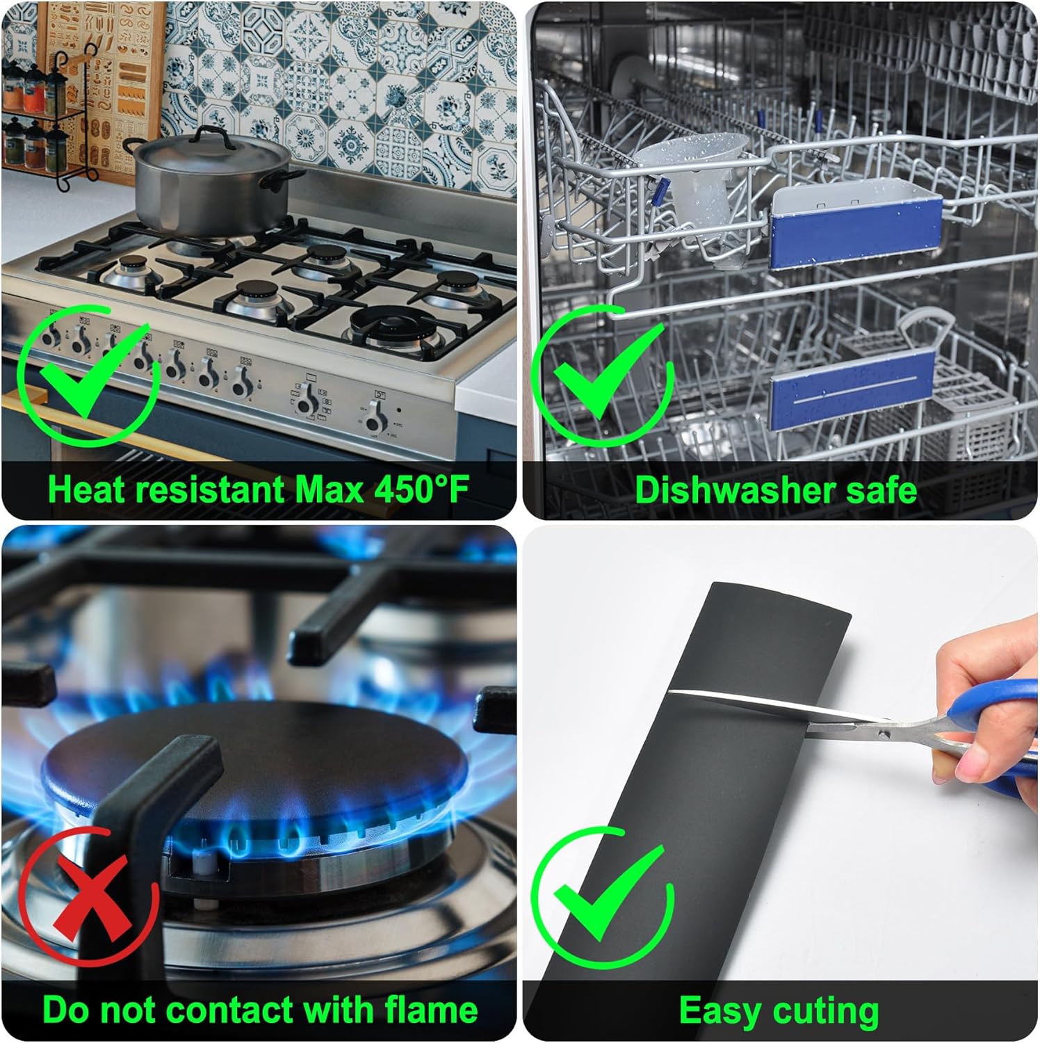 Easy To Cut : Soft and flexible silicone, conforms to stove and counter surface perfectly, even they are uneven. And the stove gap covers can easily cut to fit non-standard size for shorter place.Please measure the size of your counter gap before purchasing