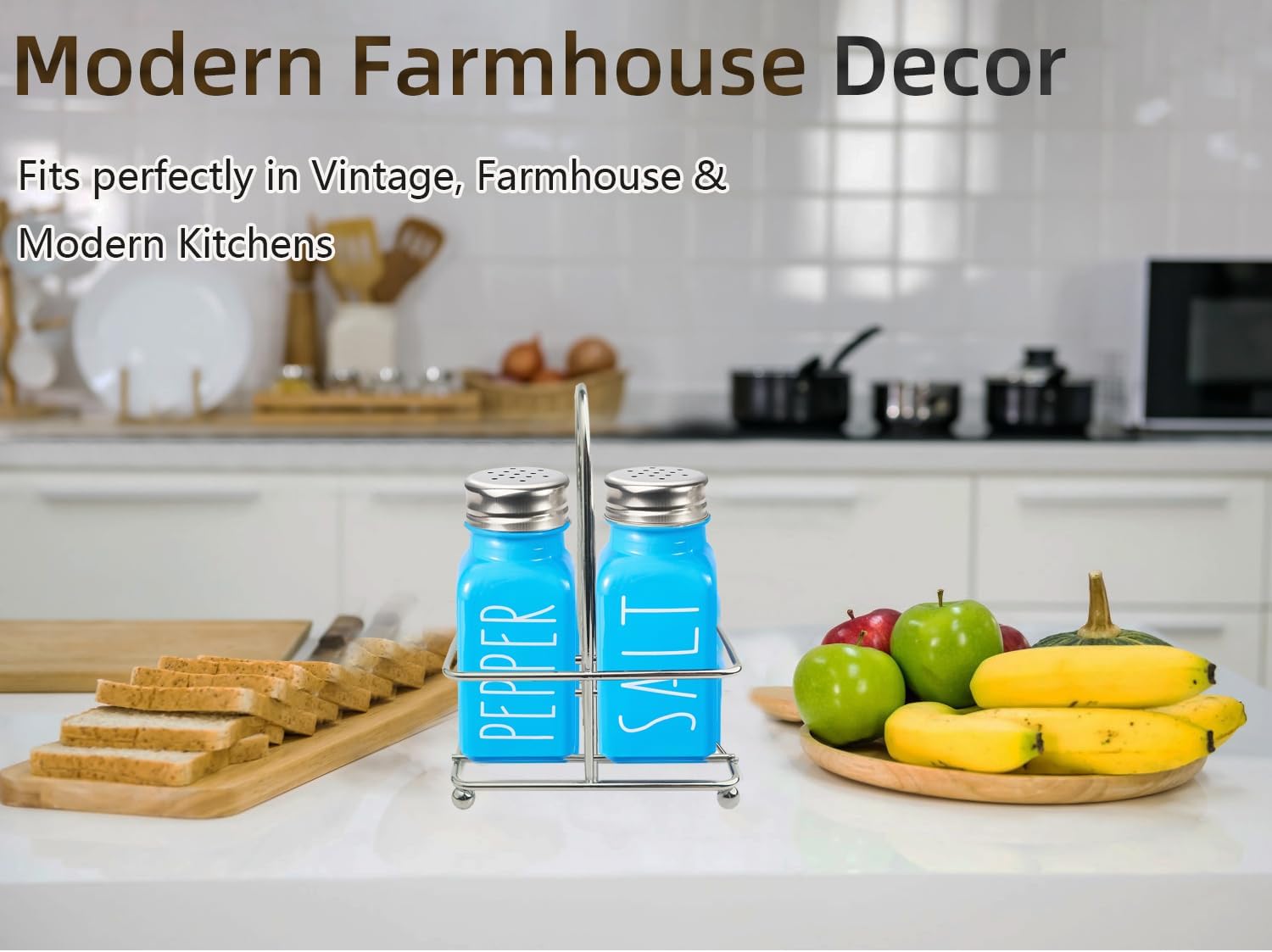 Charming Farmhouse Design: Elevate your kitchen decor with our stylish glass sky blue salt and pepper shakers set. This farmhouse decor piece adds a rustic touch to your kitchen while blending seamlessly with any home and kitchen aesthetic.
