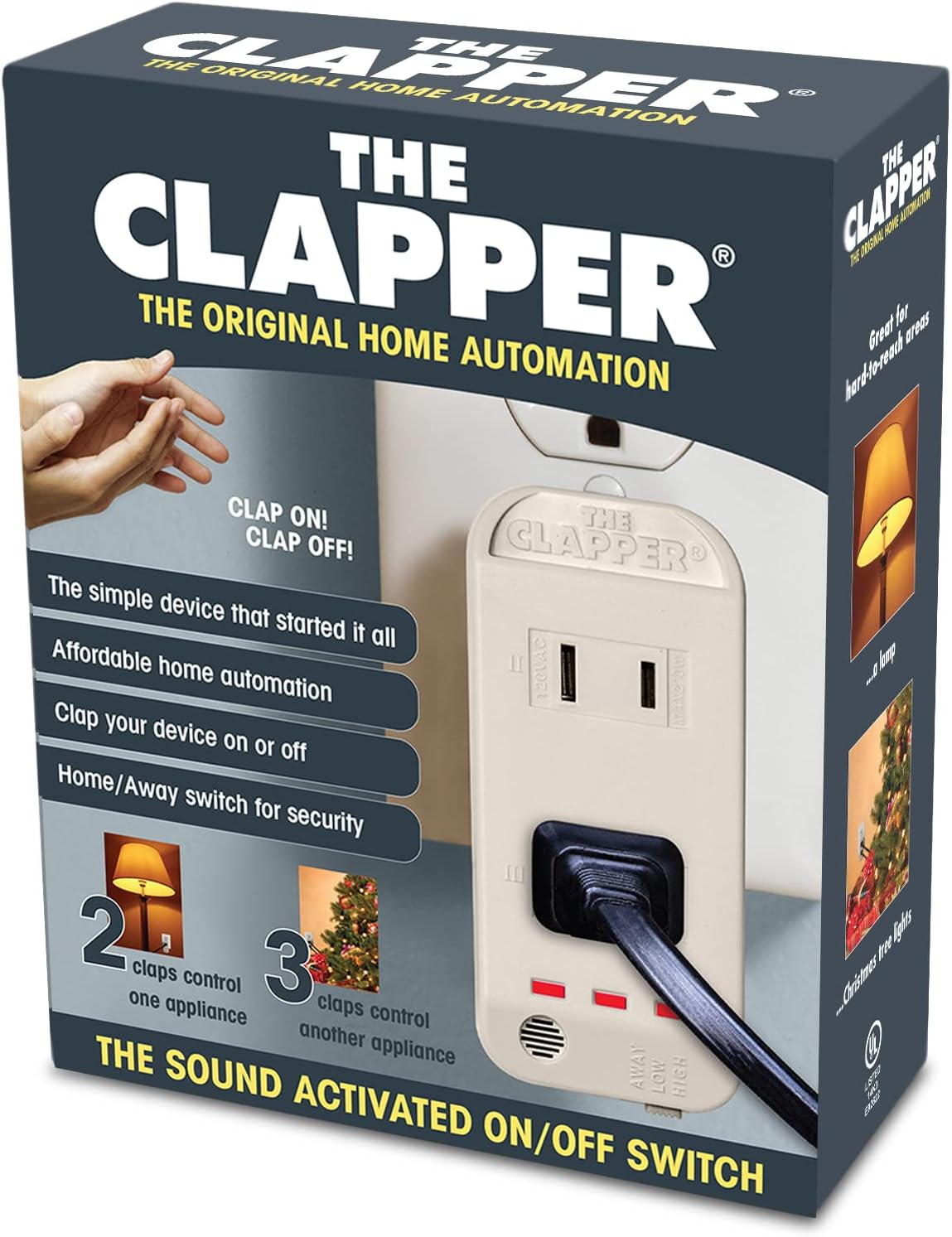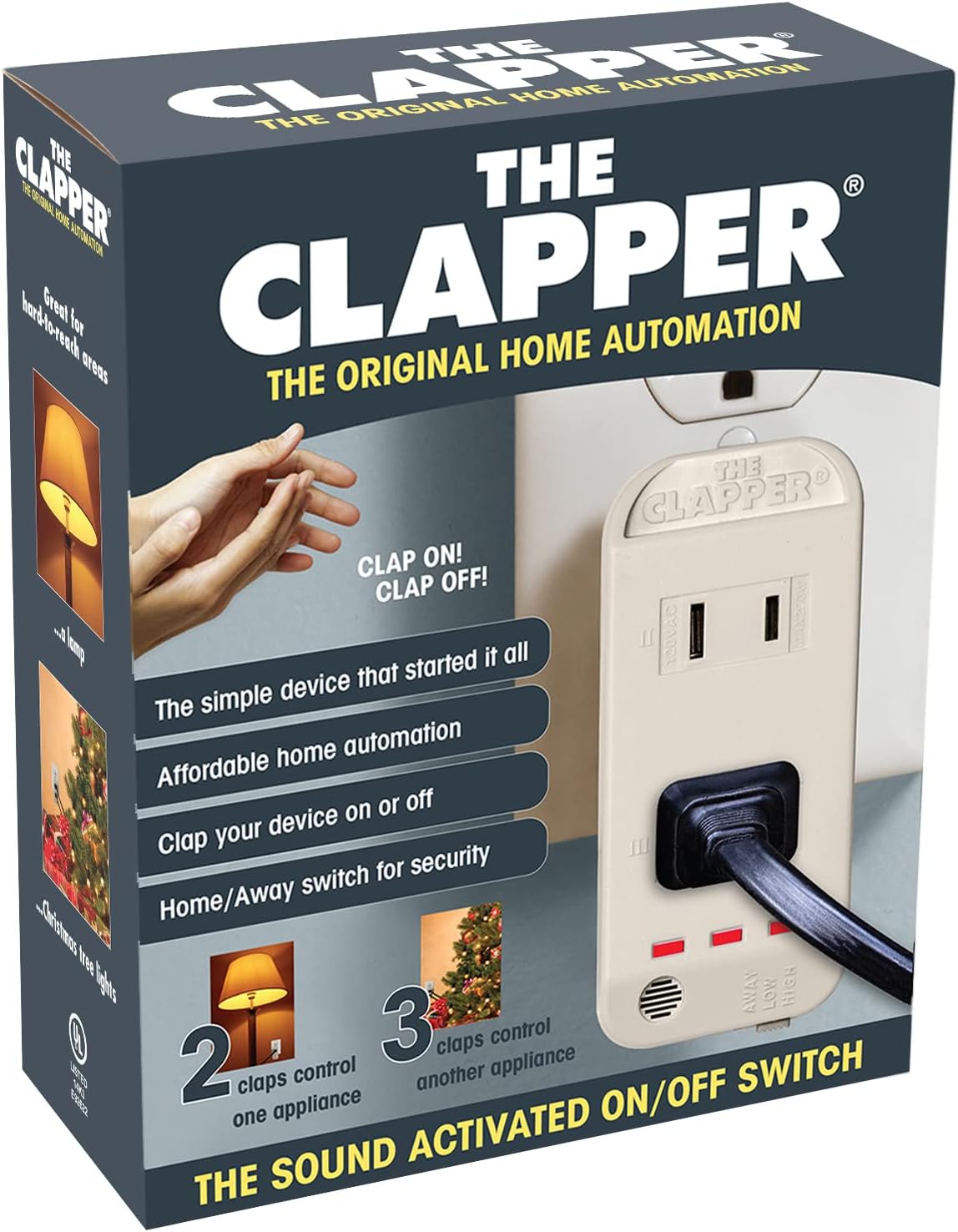 The sound activated switch that has enchanted the nation for over 30 years, the Clapper continues to assist and amaze users of all ages. Plugs into any standard outlet. Control up to 2 appliances with two or three claps. Can also be used in AWAY mode where any sound will turn on the connected appliance to help discourage potential intruders. Home automation has never been so easy and affordable.
