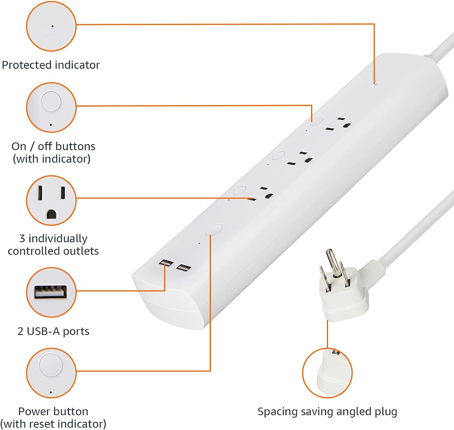 This versatile extension cord power strip offers three individually controlled outlets, allowing you the flexibility to manage multiple devices simultaneously. This power strip with two USB ports provides a convenient cell phone charging station right at your desk. Designed to seamlessly integrate with Alexa, this USB power strip adds a layer of smart control to your home, making automation easy and efficient. Forget the hassle of needing a hub; simply plug in the white power strip, engage the Alexa app, and you’re all set to enjoy advanced control from anywhere. Create groups in the Alexa app to manage devices with ease, or use voice control for individual management, transforming your space into a smart environment without any extra effort. This outlet strip enhances convenience by also acting as a USB charging station, perfect for maintaining all your gadgets at optimum power levels.