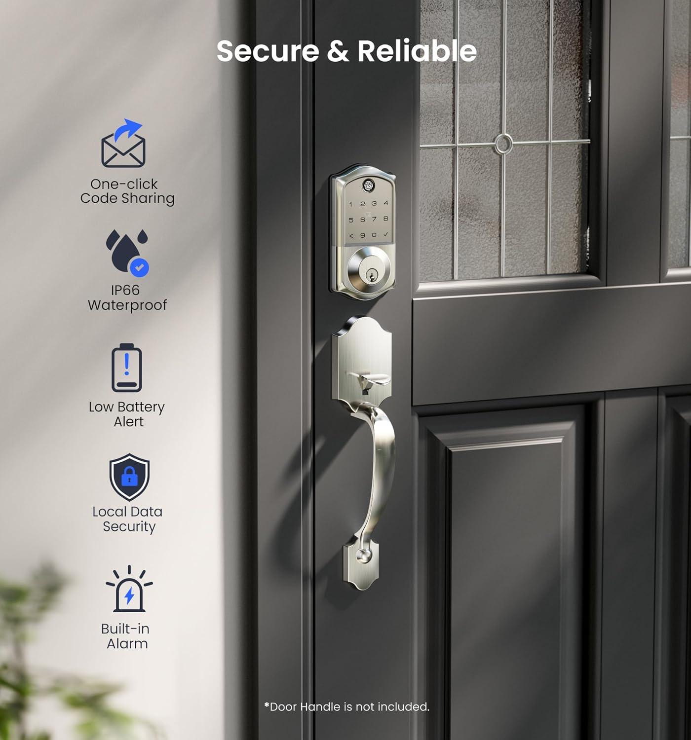 Durable & Secure: Meets ANSI Grade 3 & BHMA standards; IP66 waterproof, withstands extreme temps (-35℉ to 160℉), with low battery alerts, USB-C emergency charging and safe mode to ensure home security