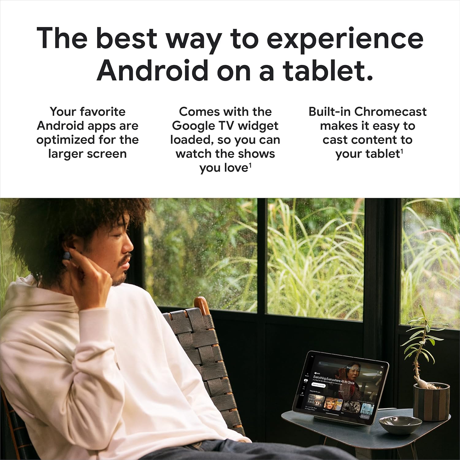 The Android apps you love are already optimized for your Pixel Tablet’s larger screen; it comes with Google TV so you can watch your favorite shows and movies, and it’s easy to cast content with Chromecast built in