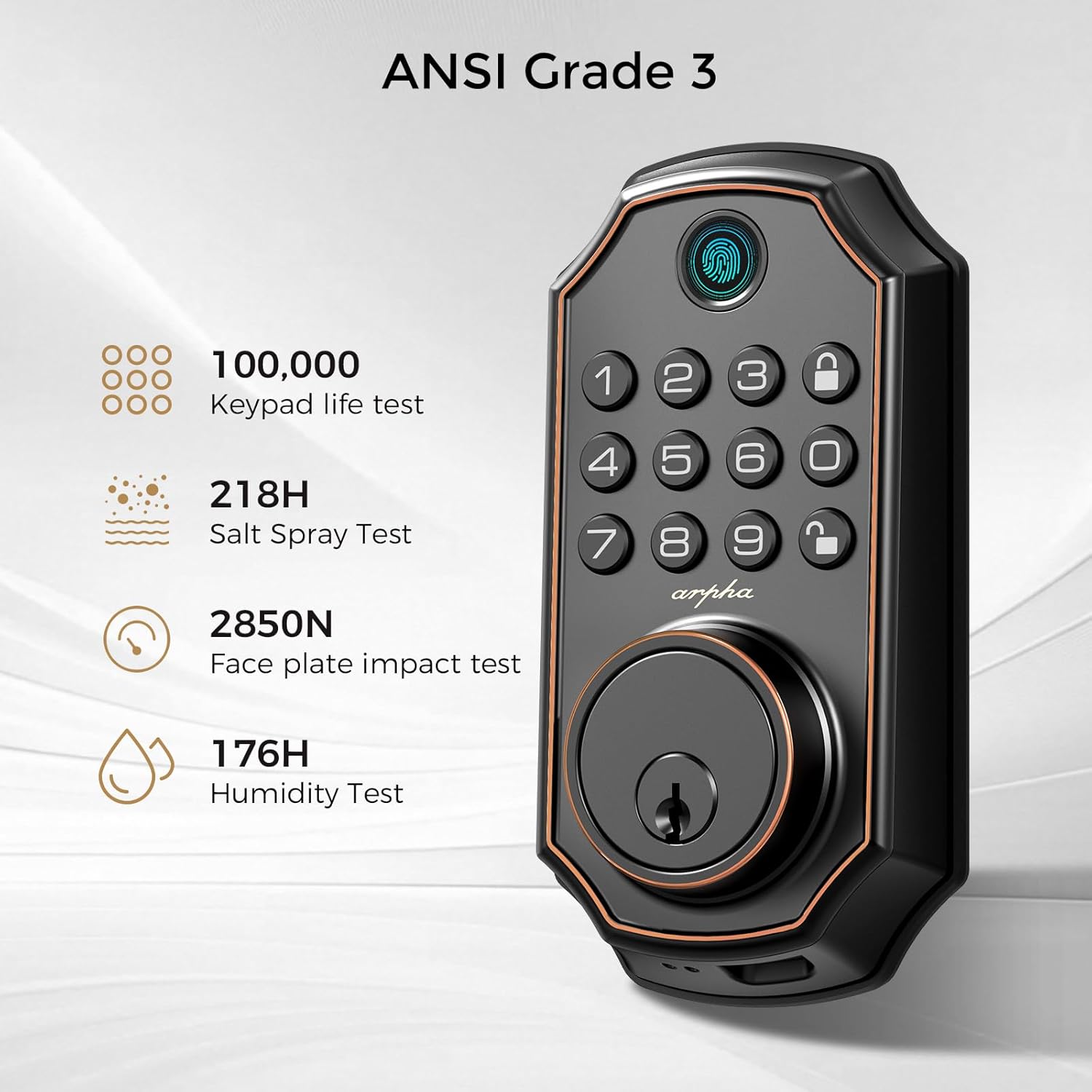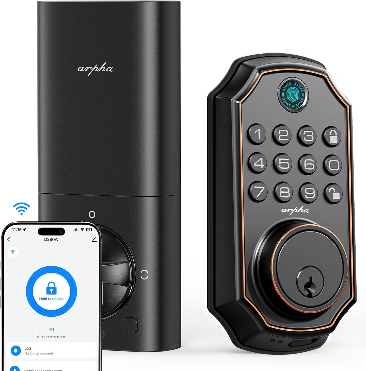๐Ÿ“-๐ข๐ง-๐Ÿ ๐ค๐ž๐ฒ๐ฅ๐ž๐ฌ๐ฌ ๐„๐ง๐ญ๐ซ๐ฒ ๐ƒ๐จ๐จ๐ซ ๐‹๐จ๐œ๐ค: Arpha wifi door lock could be unlocked via App +Fingerprint + Password + EKey + Mechanical key. You can enter 50 fingerprints, generate 100+ PlN codes, share keys and authorize administrators. Everything you need in 1 safeand secure smart lock.