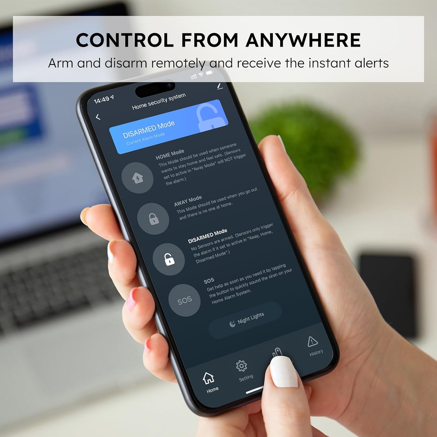 ✅Remote Control:Convenient App remote control allows you to easily arm, disarm, and monitor your home security system from anywhere.Set timers and schedules to automate your home security system, providing peace of mind even when you’re away from home