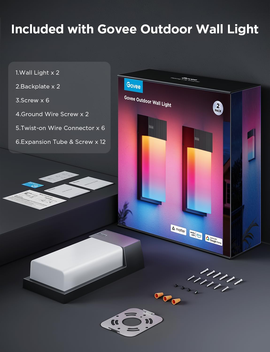 Dream-like Lighting Effects: Govee outdoor wall lights can simultaneously display at least 3 colors horizontally. Enjoy a flexible DIY experience and 45 immersive scene modes for creative outdoor decorations.