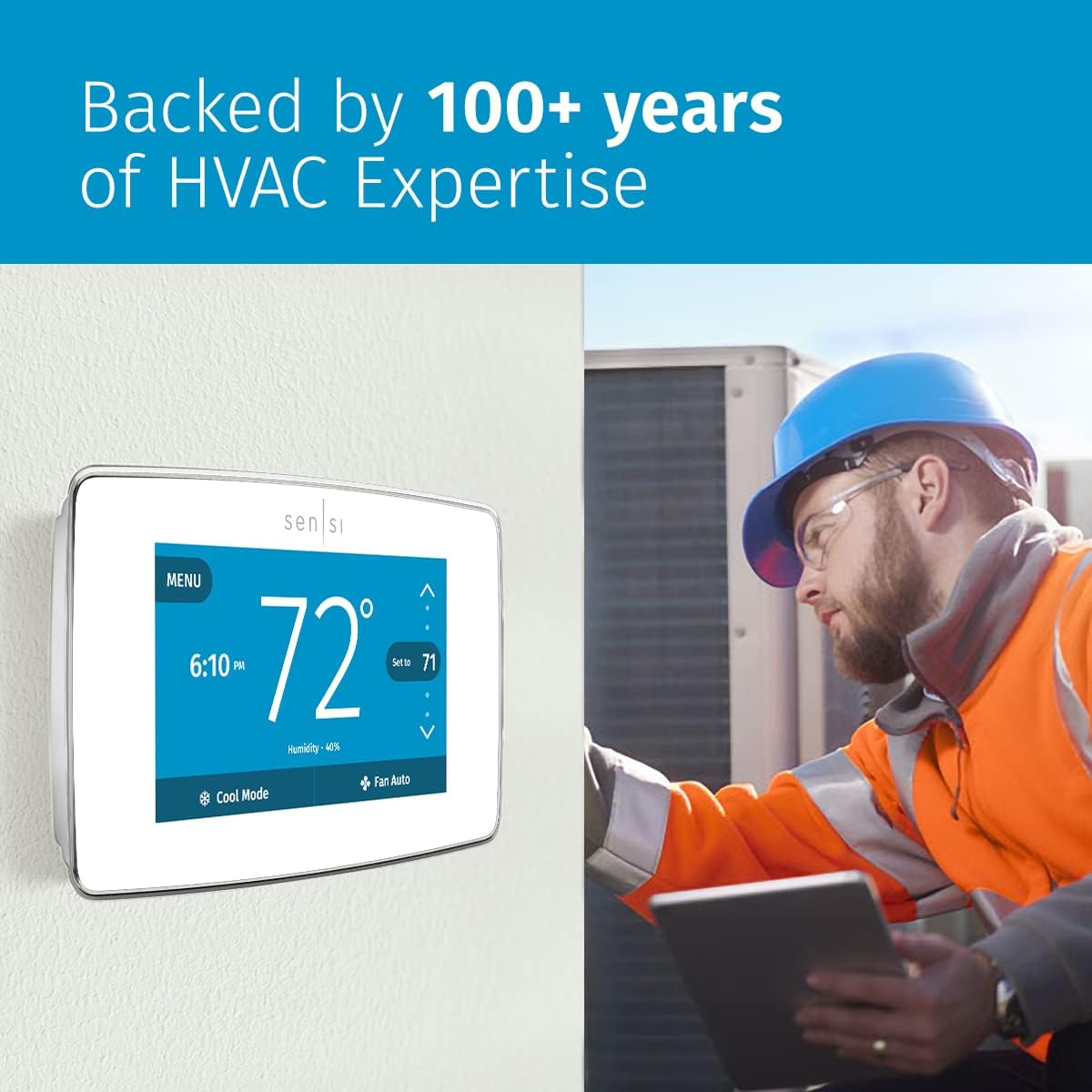 EDITORS CHOICE BEST OVERALL SMART THERMOSTAT by USA Today’s reviewed.com.SMART MAINTENANCE: Sensi can help monitor the performance and efficiency of your HVAC system by delivering important usage notifications, alerts about your equipment, and maintenance reminders like filter replacementBACKED BY HVAC EXPERTISE: More than 100 years of experience with HVAC systems went into the development of SensiSMART HOME COMPATIBLE: Sensi easily integrates with popular smart home platforms including Amazon Alexa, Apple HomeKit, Google Assistant and Samsung SmartThings.Operating humidity : 90% non-condensing max