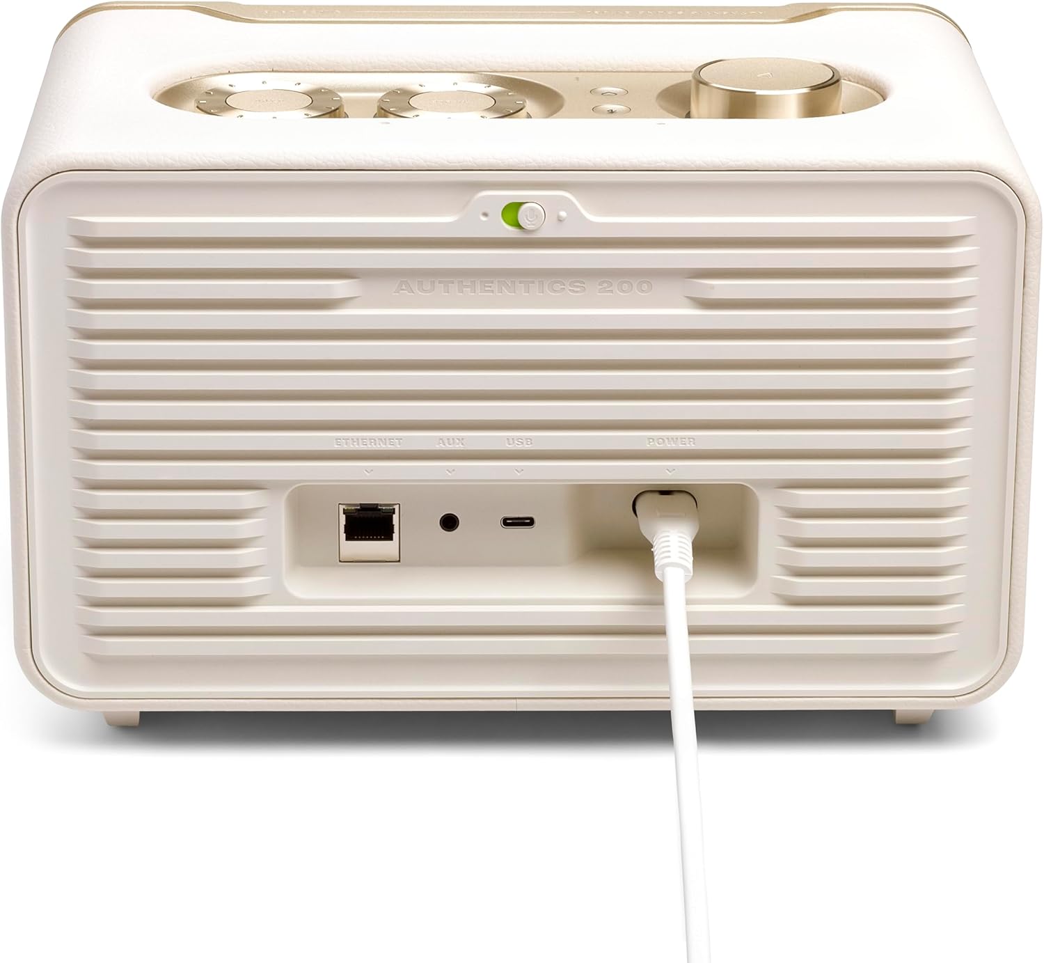 Inspired by retro design: JBL Authentics 200 is inspired by JBL heritage designs for a look that fits in any room, with superior JBL sound. The speaker’s aluminum frame, leather-like enclosure, and Quadrex grille show the attention we paid to each detail.