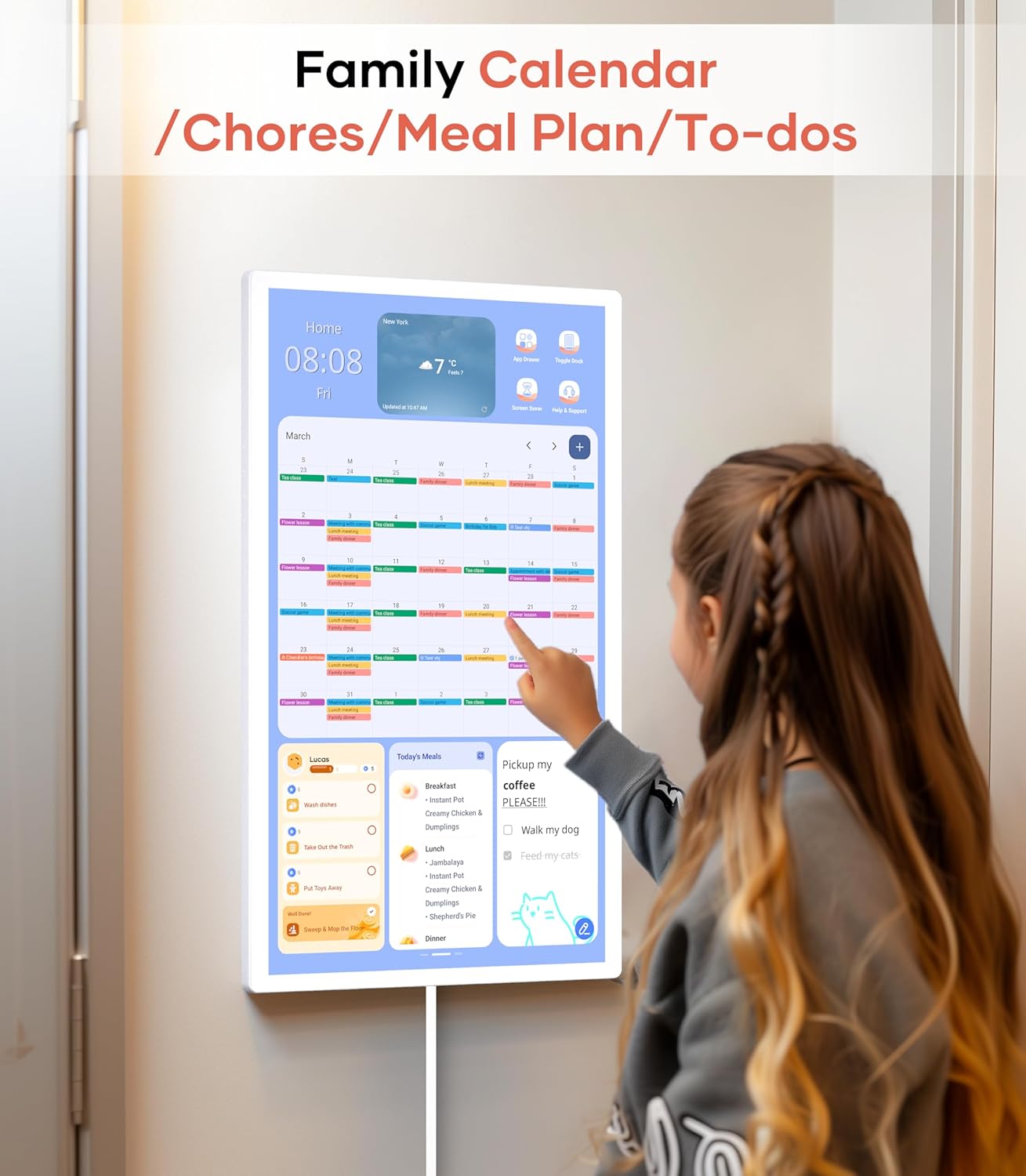 32-Inch Digital Calendar: With a large FHD display, this smart calendar digital wall supports wall mounting and can be used in landscape or portrait modes, letting you enjoy it your way.