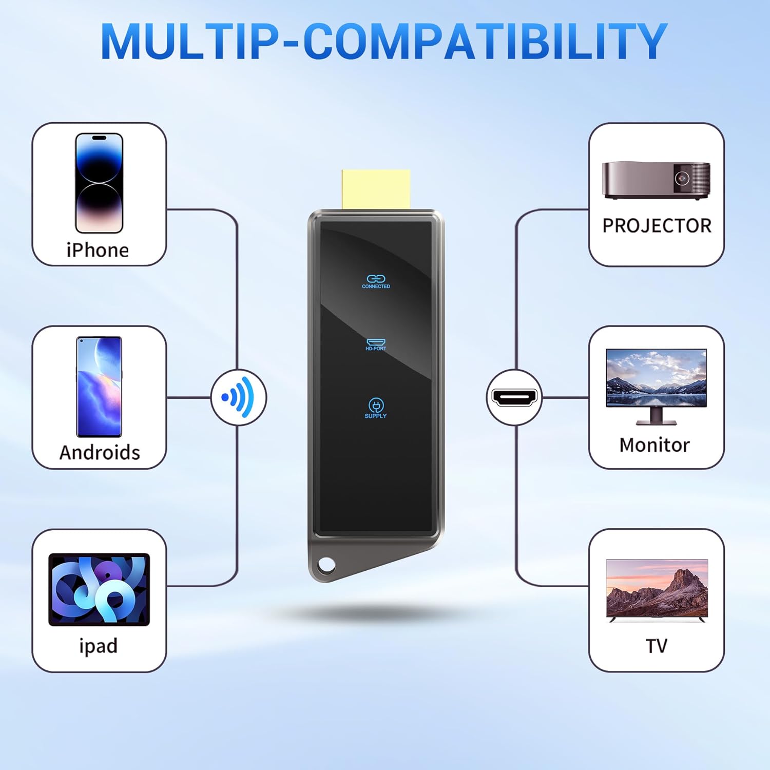 Seamless HD Wireless Streaming: Experience crisp, high-definition visuals with our wireless HDMI display dongle adapter, supporting 4K and delivers an impressive 1080P/60Hz Full HD output.
