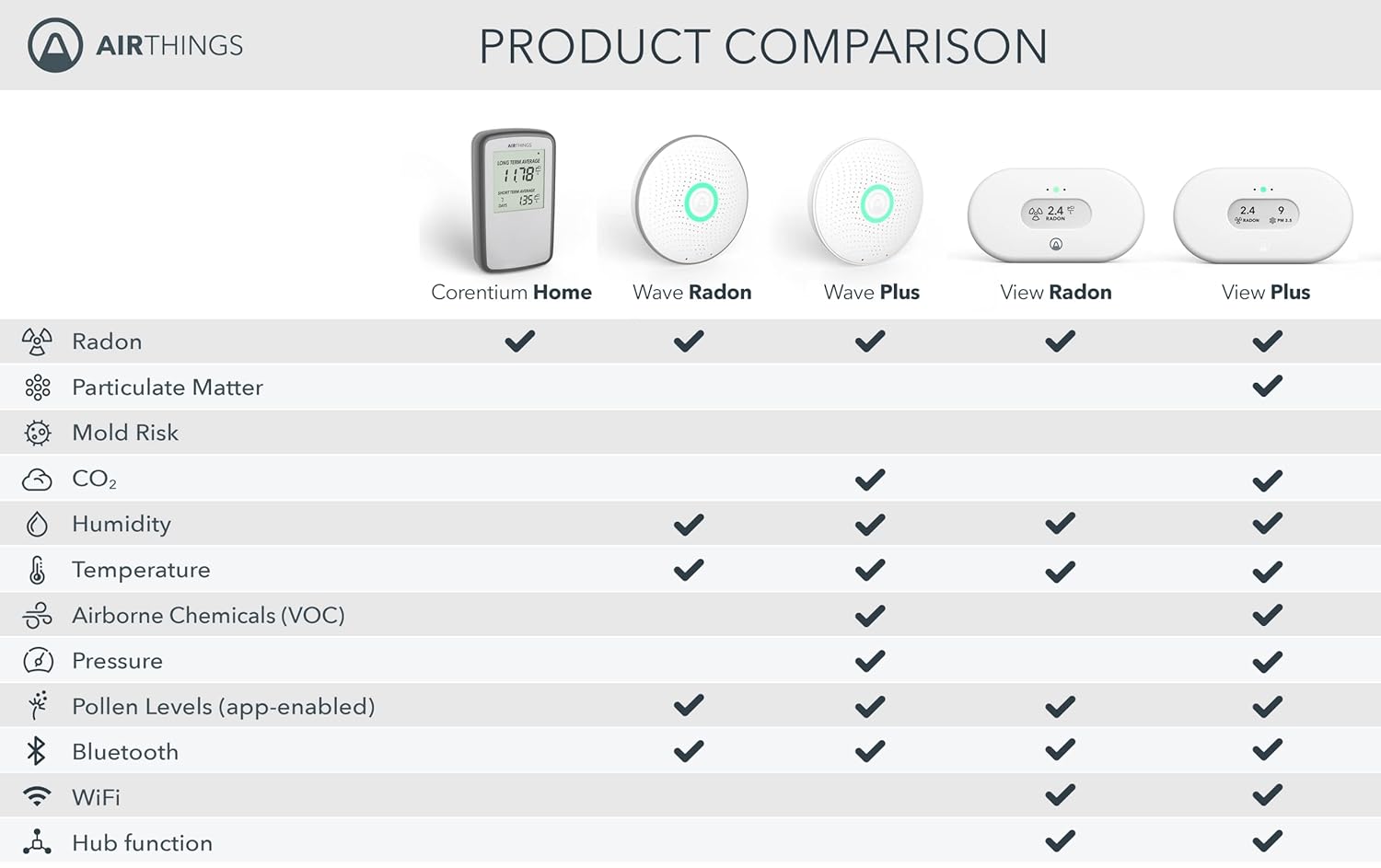 The Corentium Home by Airthings radon detector is a state-of-the-art measuring instrument that combines ease of use and performance. The Corentium Home by Airthings radon gas detector allows you to take a reading of the radon levels and its LCD screen displays the average daily, weekly and long term concentrations. Powered by 3 standard AAA batteries, the radon monitor makes it easy to take measurements from one room to another in order to get an overview of the concentrations of radon in a home, workplace, school, a daycare centre or any other location. The Corentium Home by Airthings radon detector is also an essential tool to use when performing property inspections or when checking the operation of a radon mitigation system. The internal architecture of the Corentium Home by Airthings radon monitor comes from advanced technology normally reserved for commercial-type detectors. Particular attention has been paid to the quality and protection of the internal components, allowing the use of algorithms for signal analysis that are more sophisticated. The Corentium Home by Airthings radon gas detector quickly adapts to its environment and eliminates inaccuracies related to external factors, allowing it to obtain the best accuracy in its niche. it requires no annual calibrations throughout its useful life, estimated at over 10 years.