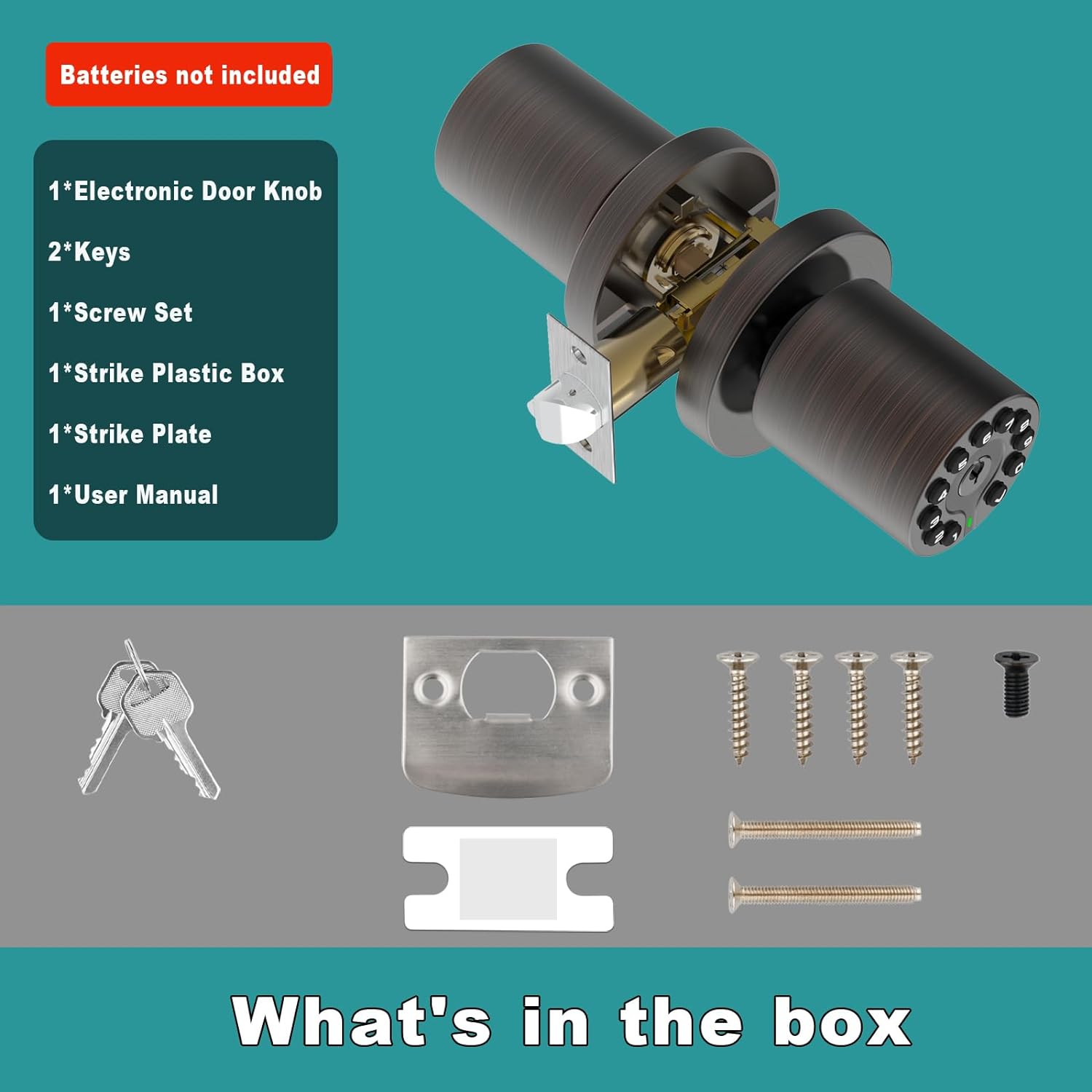 [STURDY]This keypad door knob adopts heavy-duty design, sturdy and durable. solid lock cylinder and premium metal construction. Auto-lock. Password disguise. Ideal for home, bedroom,office, hotel, garage, and apartment, etc.
