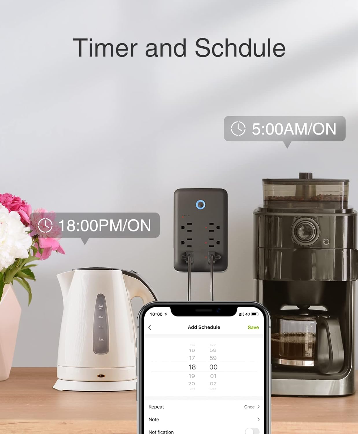 App Control & Schedule: Smart surge protector power strip support remote control via the app, no matter where you are. Set a timer to turn on/off electrical appliances when you are home or away. As a wifi plug, only supports 2.4GHz WiFi.