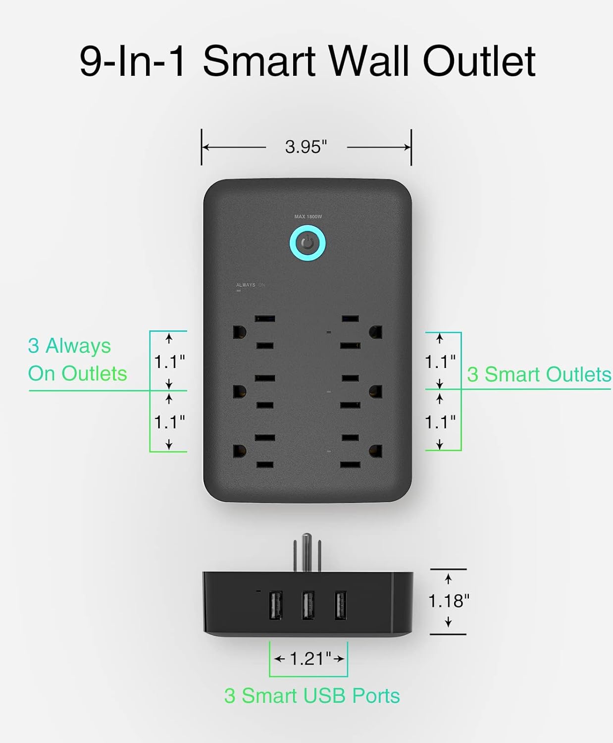 9-In-1 Smart Home Gadgets: The WiFi power strip includes 3 Smart Plugs ( Individual Control, up to 15A), 3 Smart USB Ports(Group Control, 5V/3A), and 3 Always-On Plug (up to 15A) to meet the needs of continuous power supply. Multi-plug design is suitable for kitchen, bedroom, office, and travel.