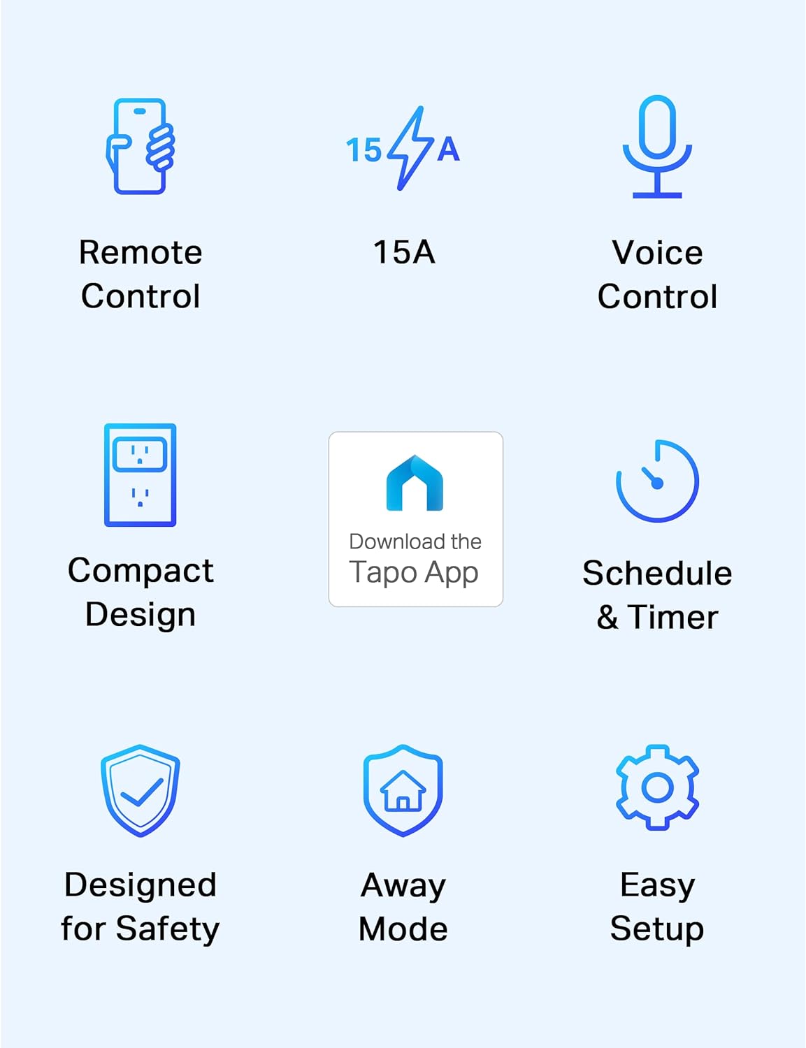 【Hands-Free Voice Control】Tapo wifi smart plug is fully compatible with Amazon Alexa and Google Assistant. Enjoy the hands-free convenience of scheduling and controlling any home electronic appliances with your voice.