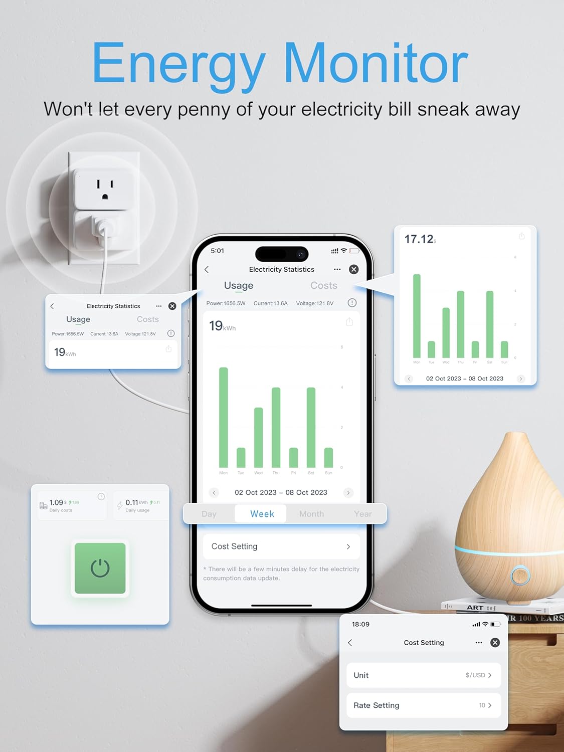𝑬𝒏𝒆𝒓𝒈𝒚 𝑴𝒐𝒏𝒊𝒕𝒐𝒓𝒊𝒏𝒈: With this smart outlet energy monitor, you can gain valuable insights into your usage patterns and make informed decisions about your energy consumption. This can help you save money on your energy bills.