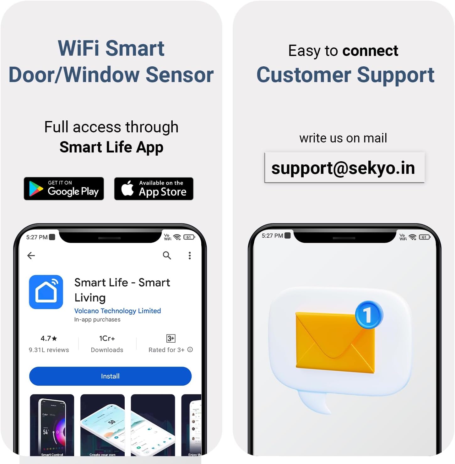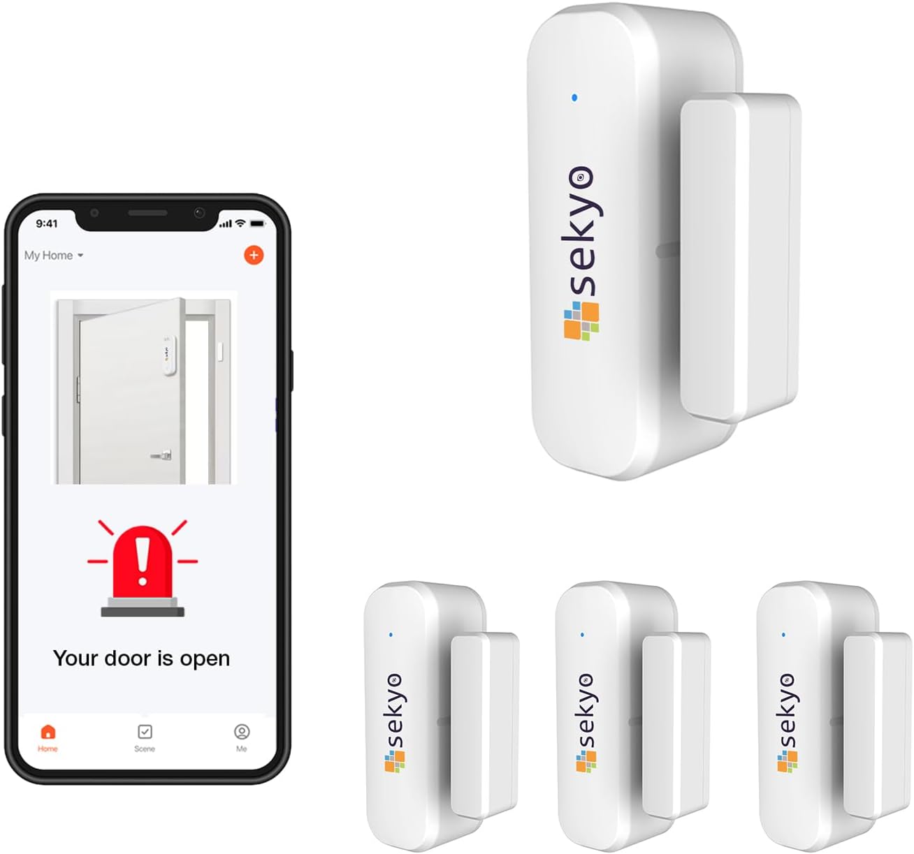 【AAA Battery Powered】Sekyo Door and Window Sensors are AAA battery-powered for a long-lasting performance. It is used to detect whether doors, windows, drawers and so on are opened or moved in your absence. When the battery is running out, you will receive an App notification. AAA batteries not included in the box.